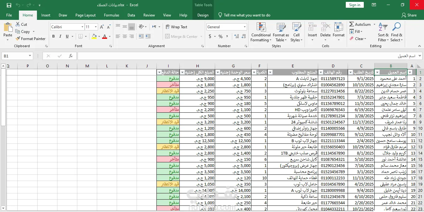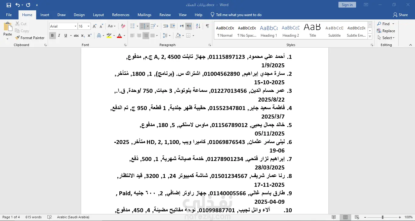 م تحويل نص word لبيانات عملاء بمحل الكترونيات الي ملف Excel مع تنظيم الجداول بحيث يتناسب مع طبيعه العمل من حسابات ورصد بيانات