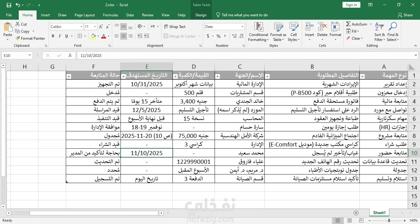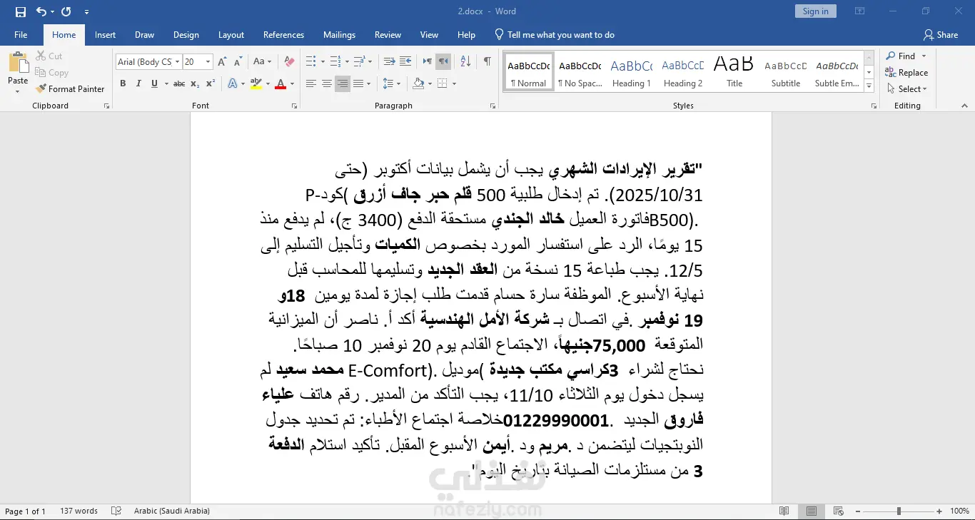 تم تحويل مسوده وورد لجدول اكسيل لتبسيط بيانات وتصنيفها حيث يحدد دقه البيانات
