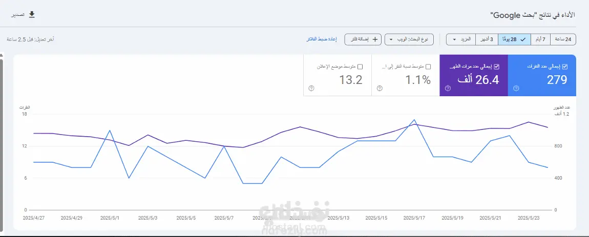 زيادة ملحوظة في الظهور والنقرات خلال شهرين.