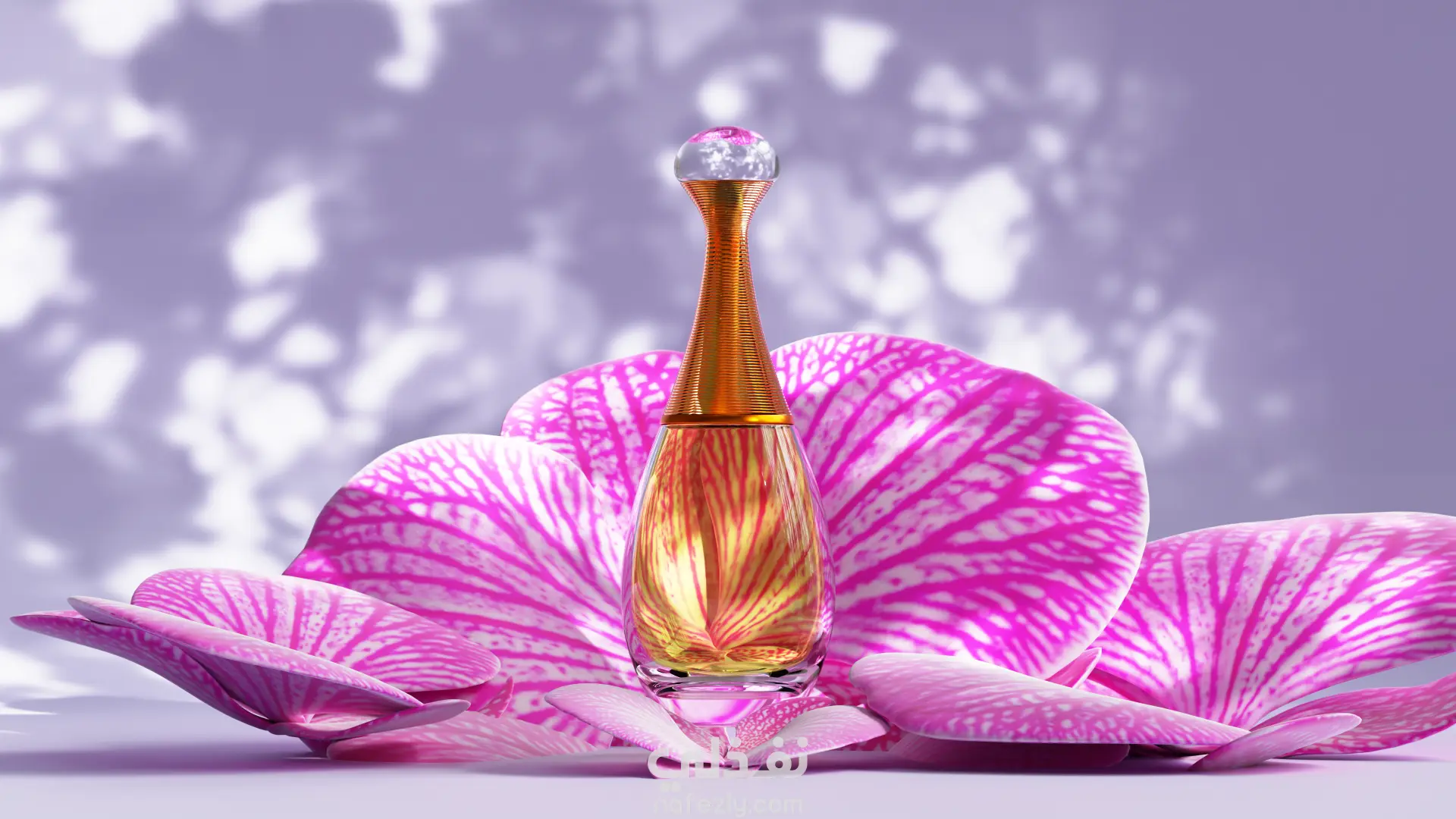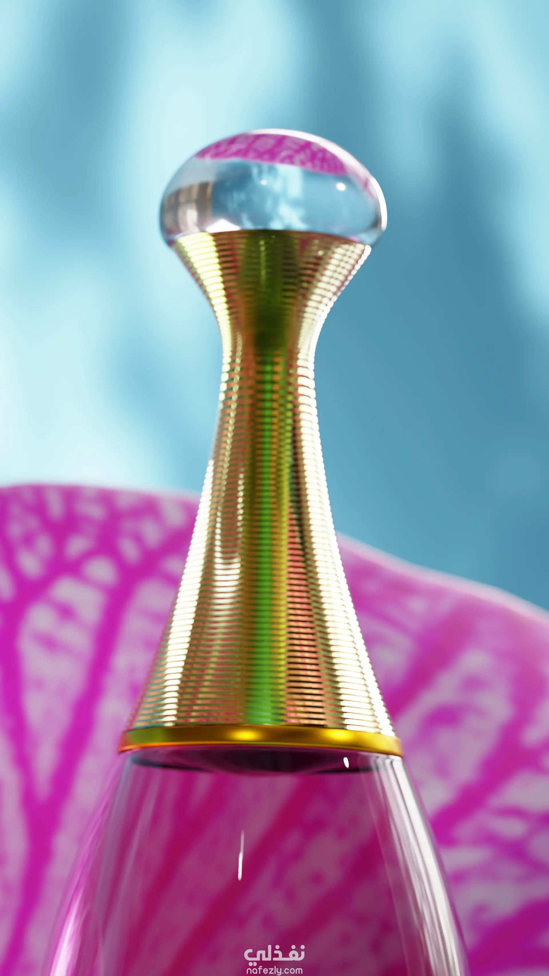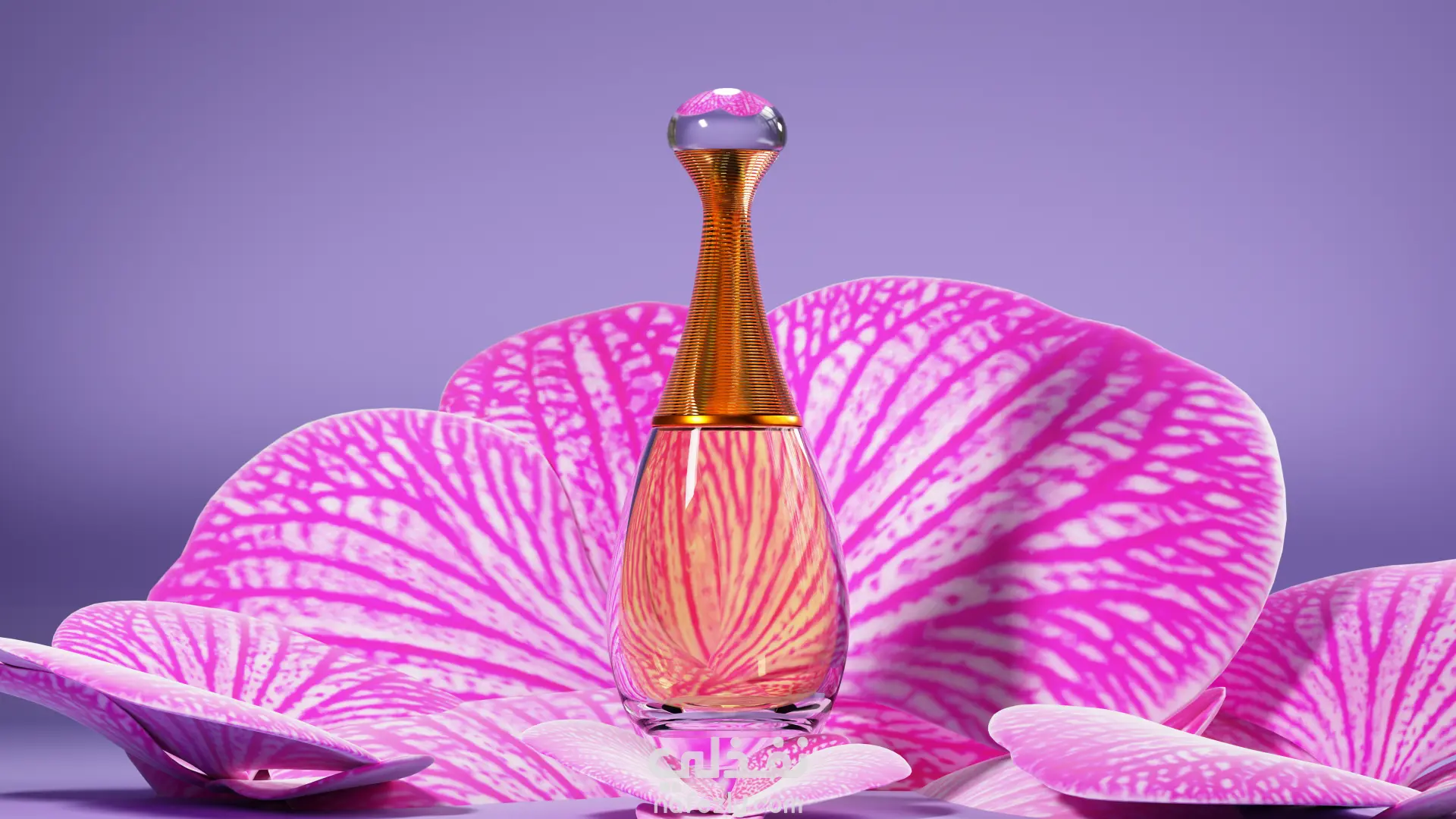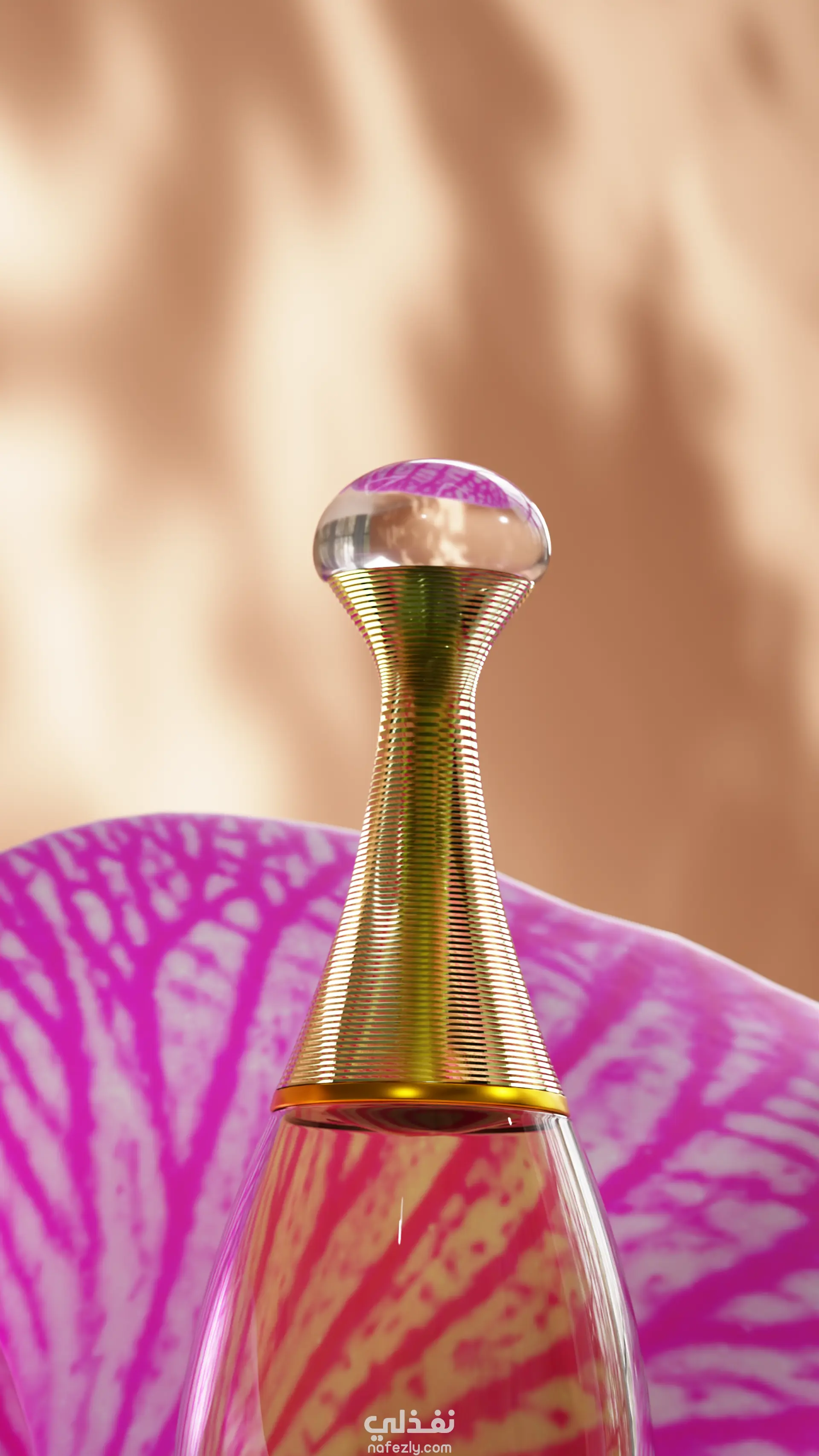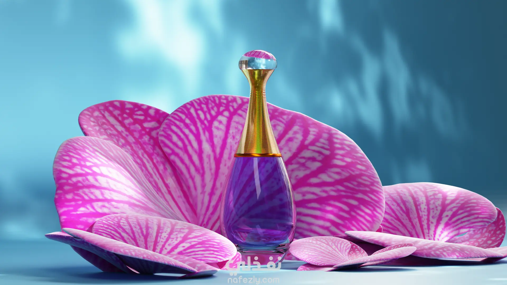 زجاجة العطر الفاخرة في عدة سيناريوهات واقعية ومختلفة، كما هو موضح في الصور التالية التركيز على التفاصيل: تظهر هذه الصور دقة النمذجة ثلاثية الأبعاد للزجاجة، من انحناءاتها الزجاجية النقية إلى تفاصيل الغطاء الذهبي المموج. يتم تسليط الضوء على تفاعل الضوء والظل بشكل واقعي على الأسطح، مما يبرز جودة المواد. توضح هذه الأمثلة كيف يمكن دمج المنتج في بيئة متكاملة. يظهر العطر محاطاً بتلات زهرة الأوركيد الوردية ذات النمط الفريد، مع اختلاف الإضاءة والخلفية لخلق أجواء مختلفة