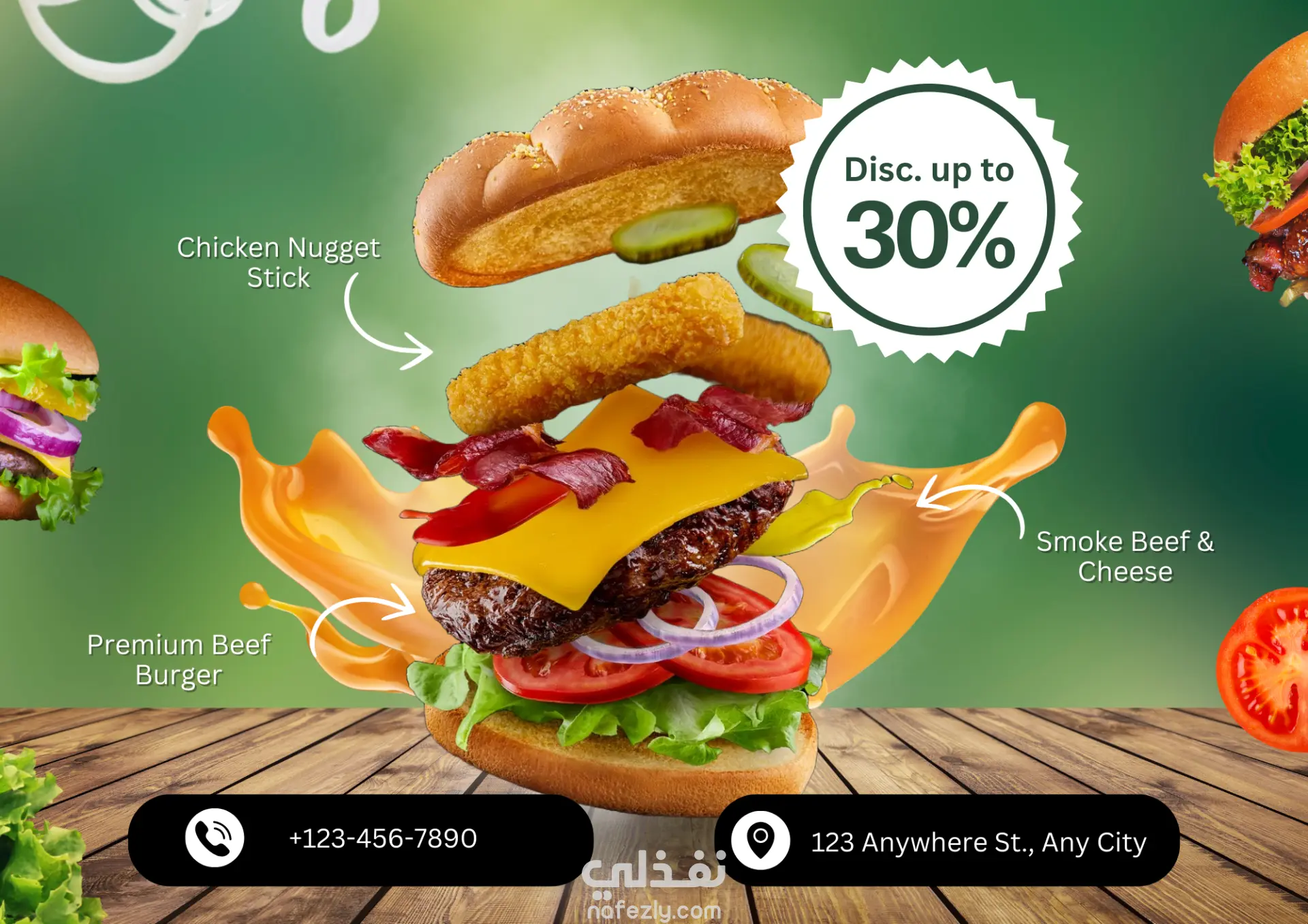تصميم فلاير إبداعي ومخصص بالكامل بدون استخدام قوالب جاهزة.
