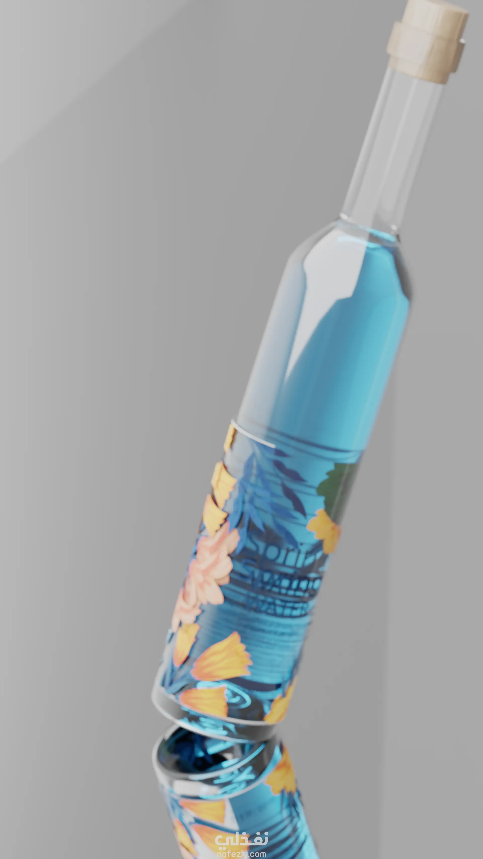 تصور ثلاثي الأبعاد لمنتج (Product Visualization) تم تنفيذه بالكامل باستخدام برنامج Blender من الألف إلى الياء. يهدف المشروع إلى إبراز القدرات التقنية لمحرك "Cycles" في محاكاة السوائل والزجاج بواقعية، مع الحفاظ على جمالية التصميم الفني. النمذجة (Modeling): بناء هندسي نظيف (Clean Topology) لهيكل الزجاجة لضمان انسيابية الانعكاسات. نمذجة سدادة الفلين (Cork) وإضافة تفاصيل دقيقة لإبراز ملمسها الطبيعي الإكساء والمواد (Texturing & Shading): استخدام Blender Shader Editor لإنشاء خامة زجاجية واقعية (Realistic Glass Shader) مع ضبط دقيق لمعامل الانكسار (IOR). تطبيق خامة الملصق (Label) باستخدام UV Mapping دقيق لضمان التفاف التصميم حول الزجاجة دون تشوه. استخدام Nodes لإنشاء خامة الفلين والخشب بملمس واقعي. الإضاءة والريندر (Lighting & Rendering): تمت الإضاءة وتكوين المشهد بالكامل داخل بلندر باستخدام تقنيات إضاءة الاستوديو (Studio Lighting Setup) للتحكم في الـ Highlights والظلال. الريندر النهائي تم باستخدام محرك Cycles للحصول على فيزياء ضوء دقيقة، خاصة في مناطق انكسار الضوء عبر السائل والزجاج (Caustics & Refraction).