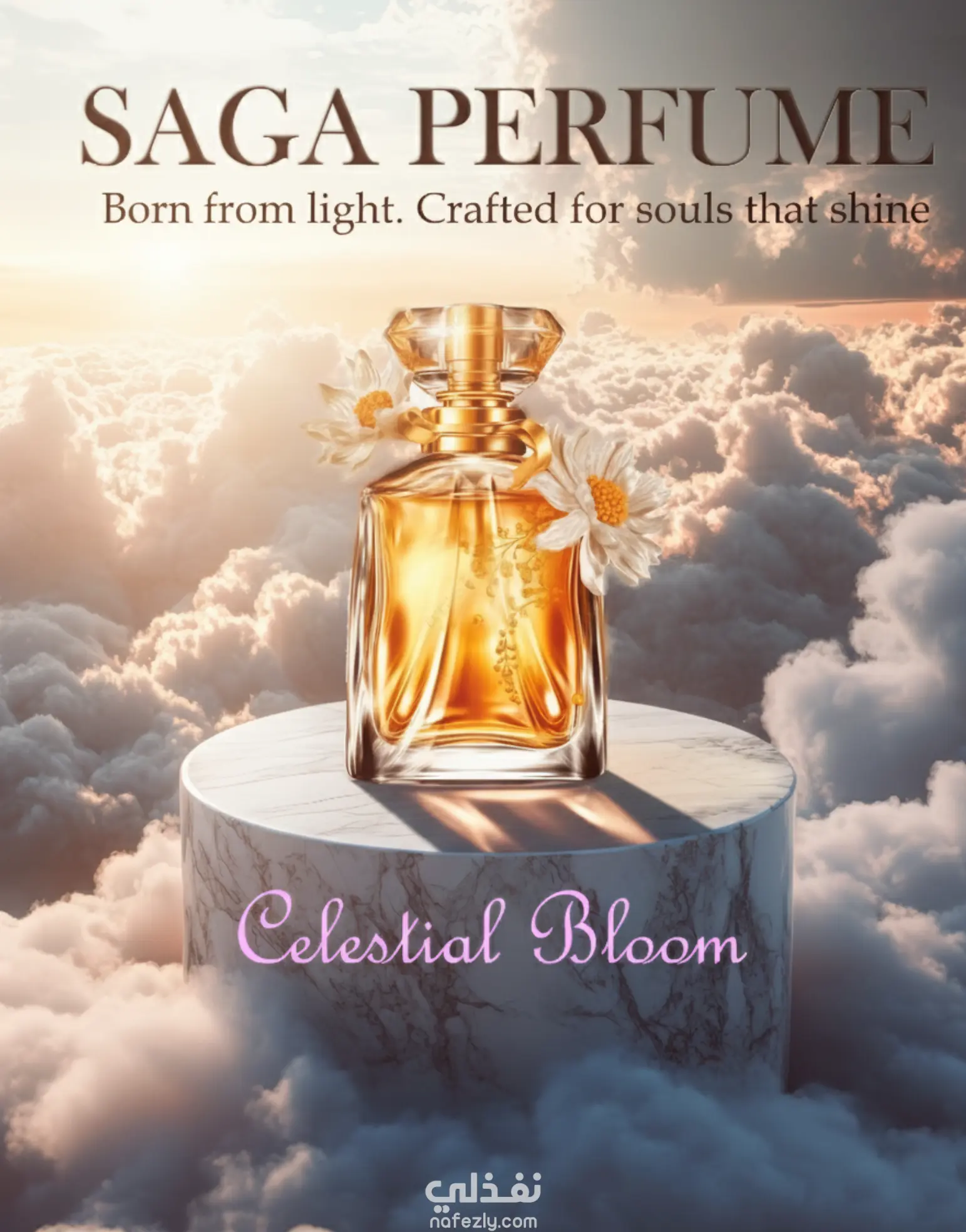 تصميم إعلان إبداعي لعطر فاخر – Saga Perfume Celestial Bloom
