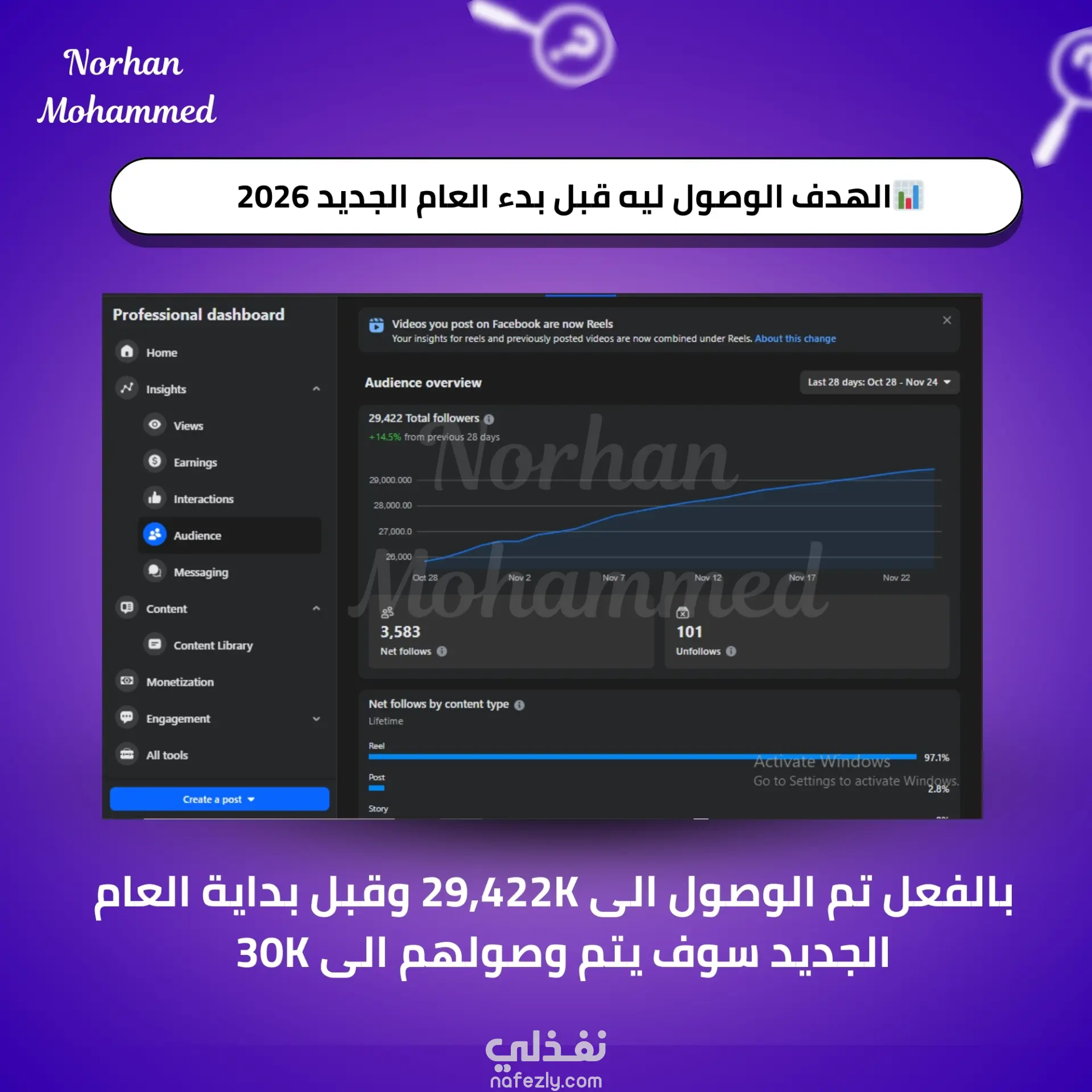 بالفعل تم الوصول إلى 29,422 متابع، ومن المتوقع قبل بداية العام الجديد الوصول إلى 30,000 متابع، وذلك بفضل استراتيجية المحتوى المعتمدة على جذب جمهور جديد وزيادة المتابعين عبر دعوة المتابعة (CTA: Follow Page).