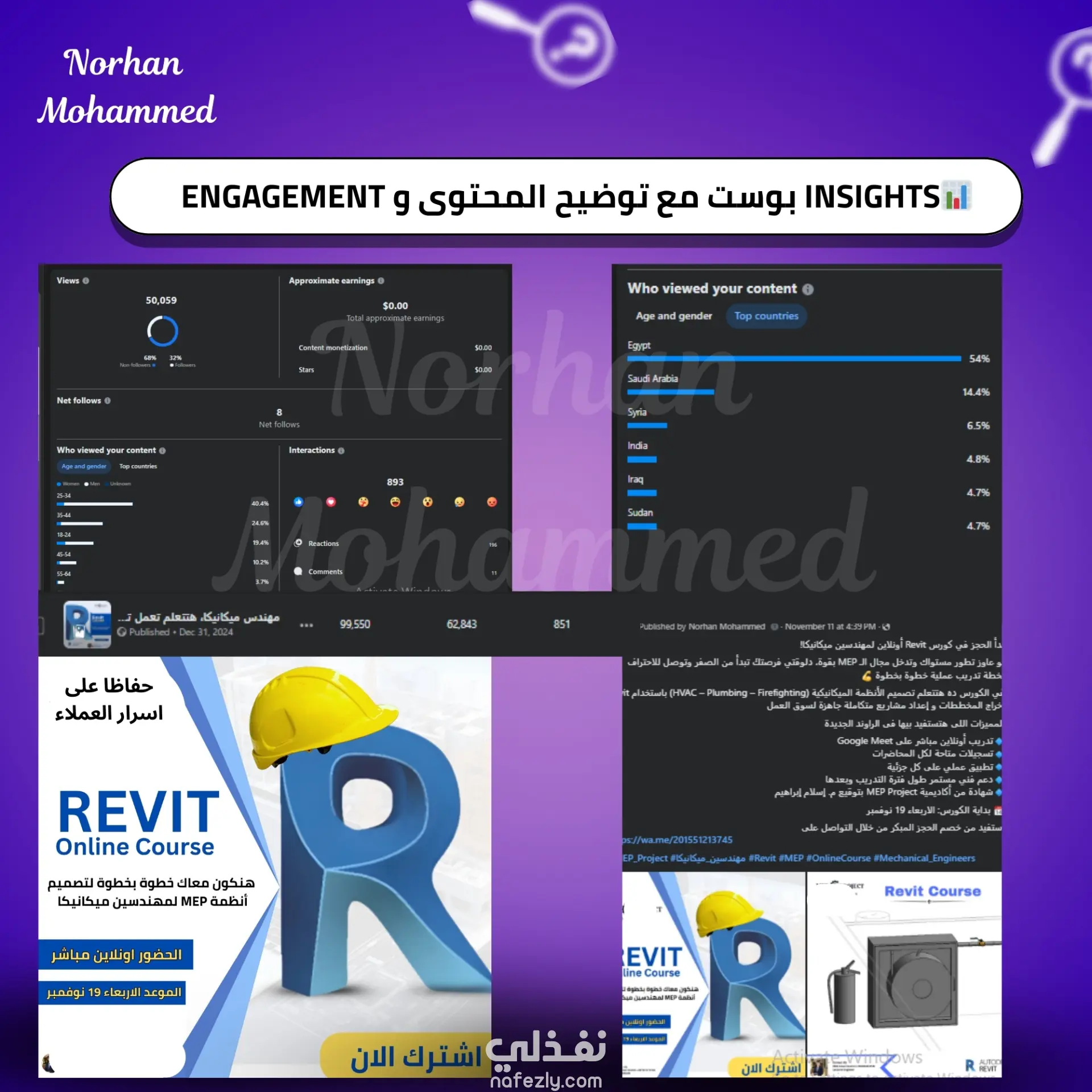 أكثر من 75% من المشاهدات جاءت من محتوى الريلز، ما يؤكد أن الجمهور يتفاعل بقوة مع المقاطع التعليمية القصيرة والعملية في مجال الهندسة الميكانيكية.