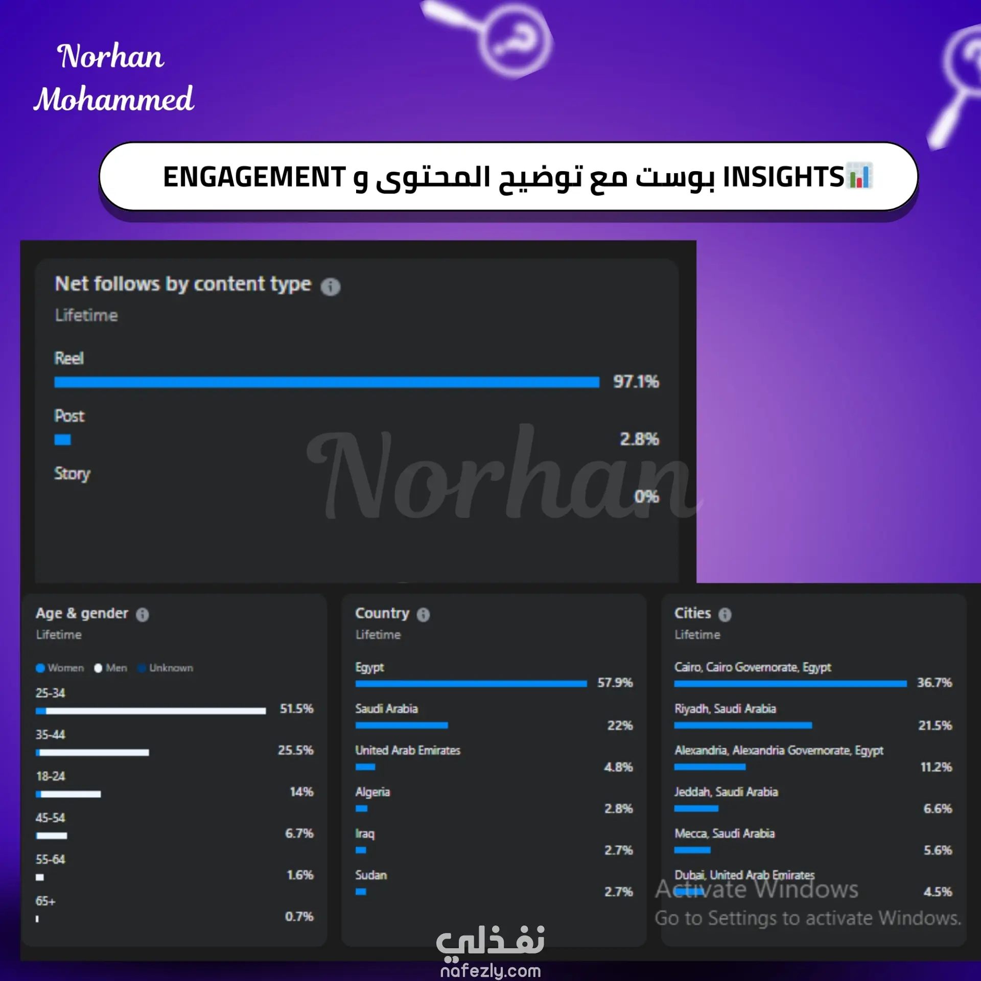 المناطق والمحافظات الأكثر متابعة للصفحة، وهي معلومة مهمة يمكن الاستفادة منها في تقديم عروض خاصة أو تحديد الاستهداف الجغرافي للحملات الإعلانية.