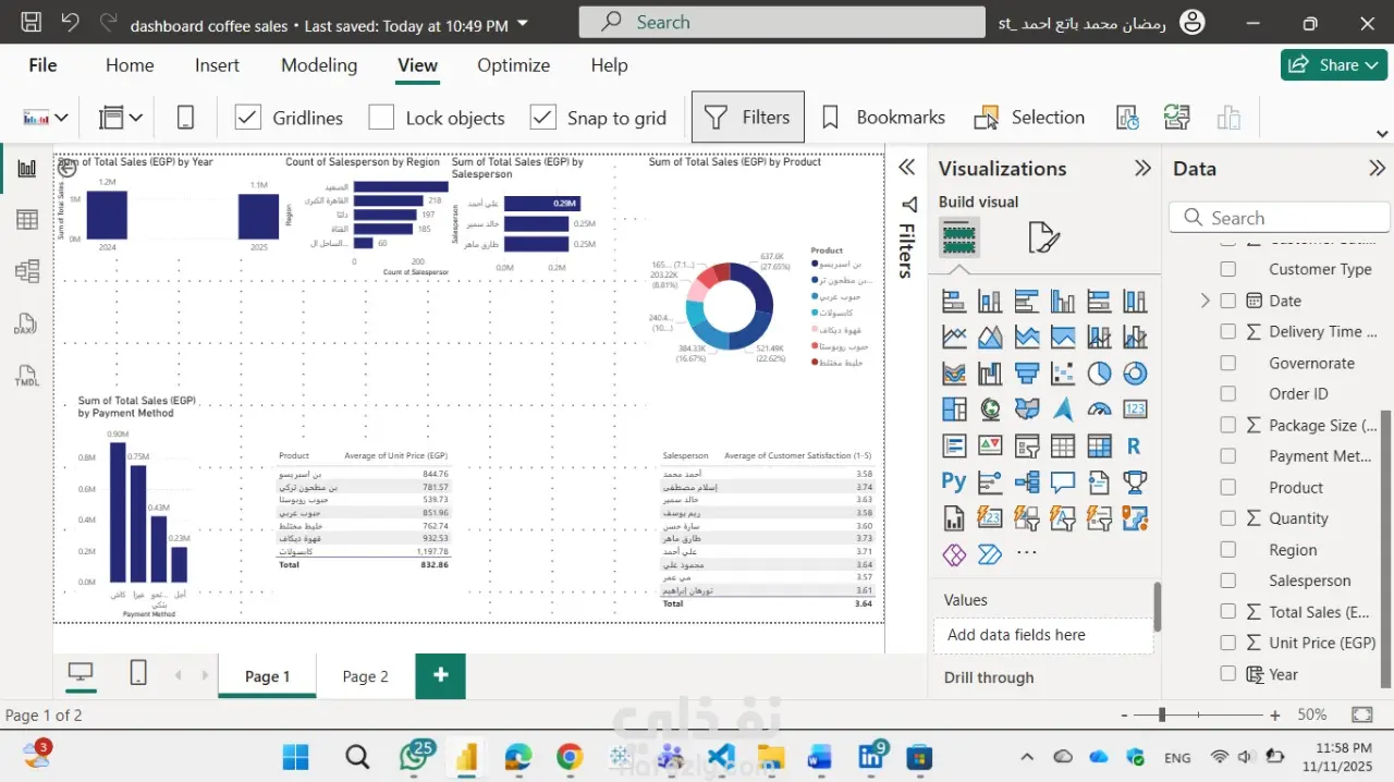 عمل داشبورد مبيعات بن القهوة ببرنامج power bi