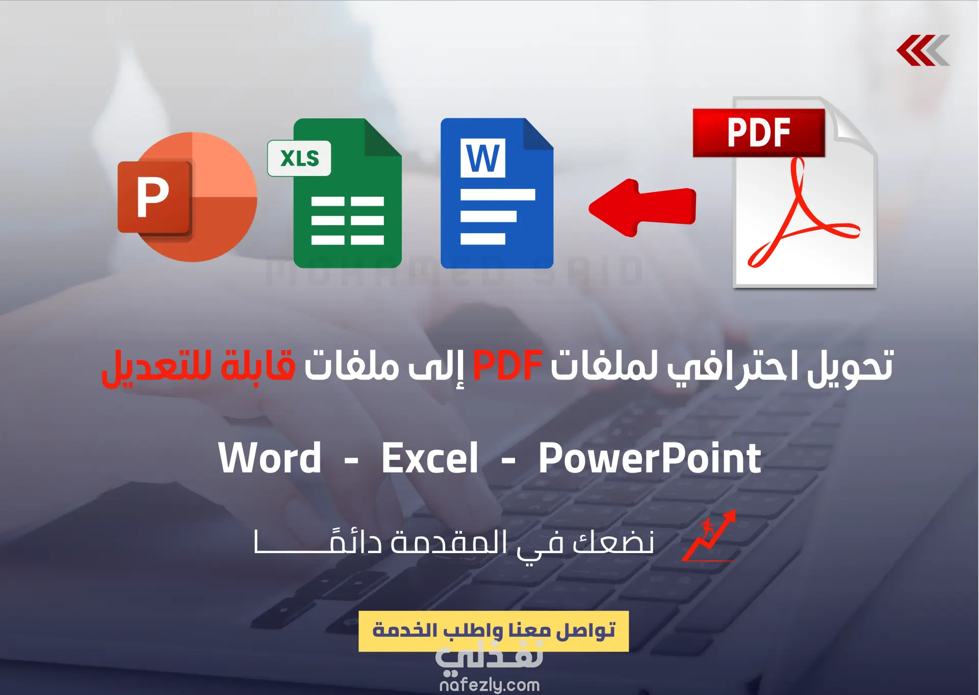أقدم لك خدمة تحويل ملفات PDF إلى Word – Excel – PowerPoint بجودة ممتازة وبدون فقدان التنسيق أو المحتوى.