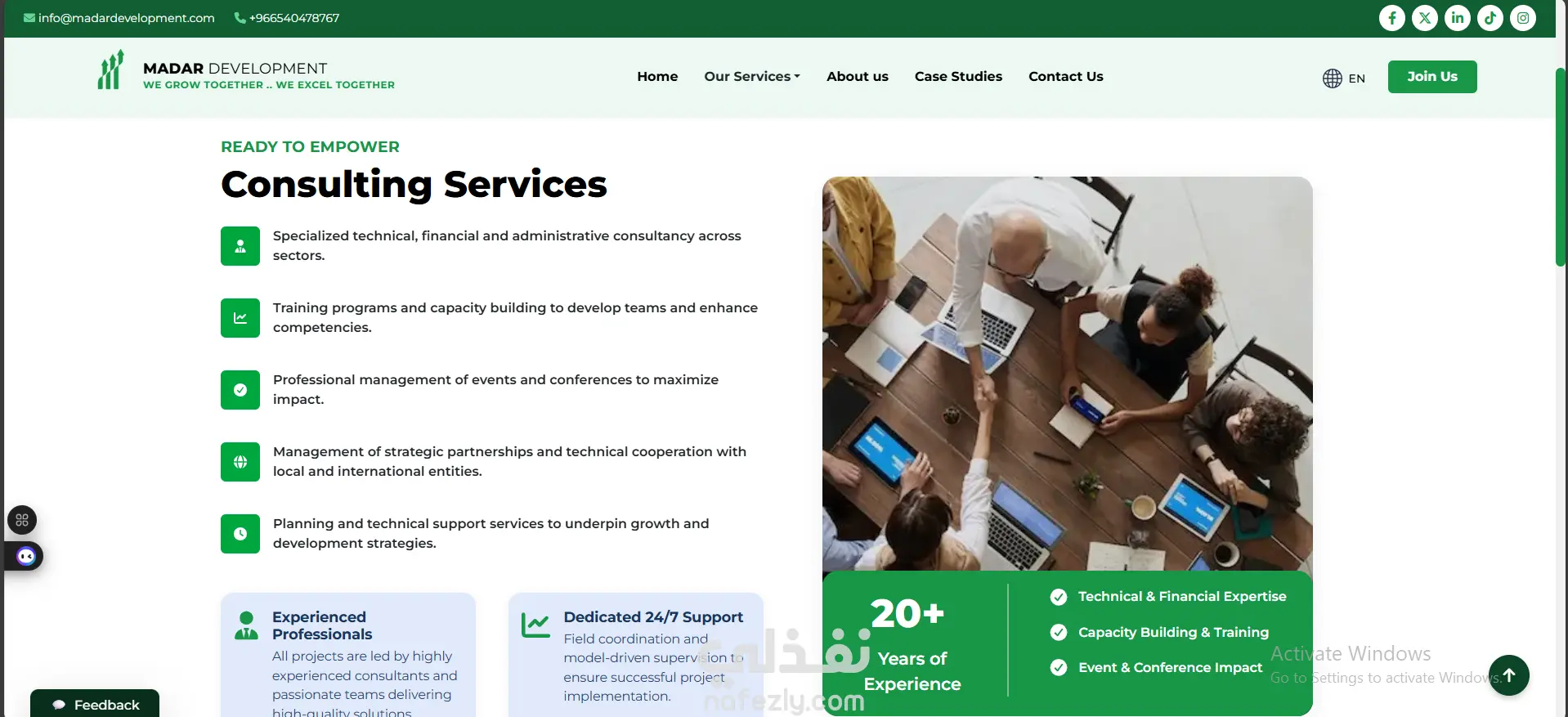 تطوير واجهة موقع Madar Development باستخدام React (بدعم لغتين)