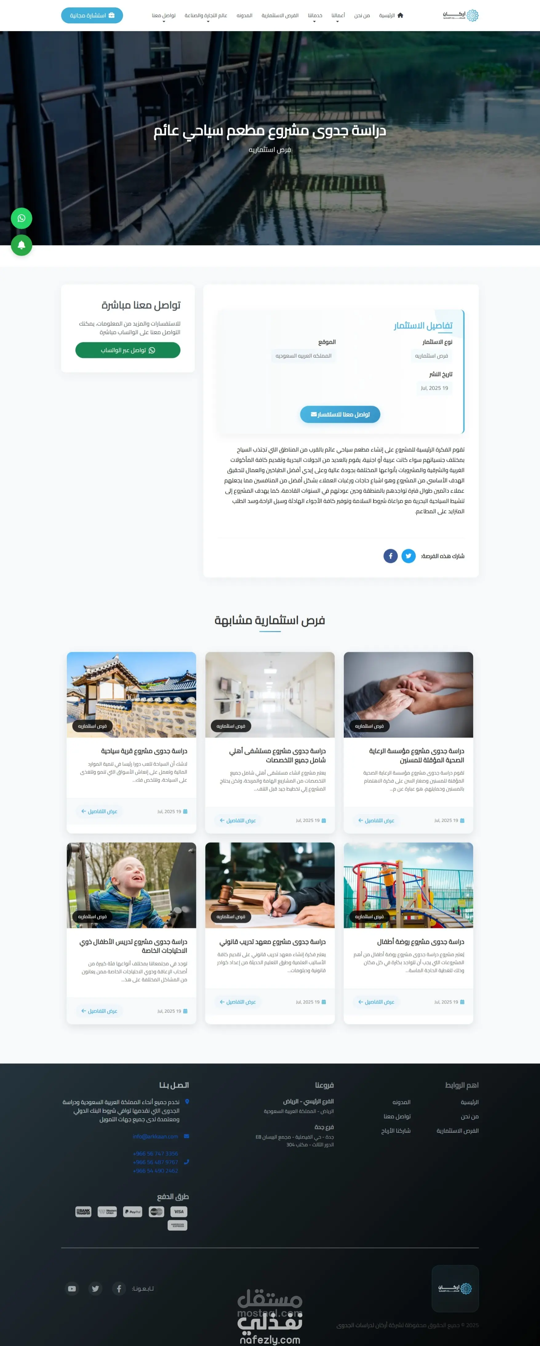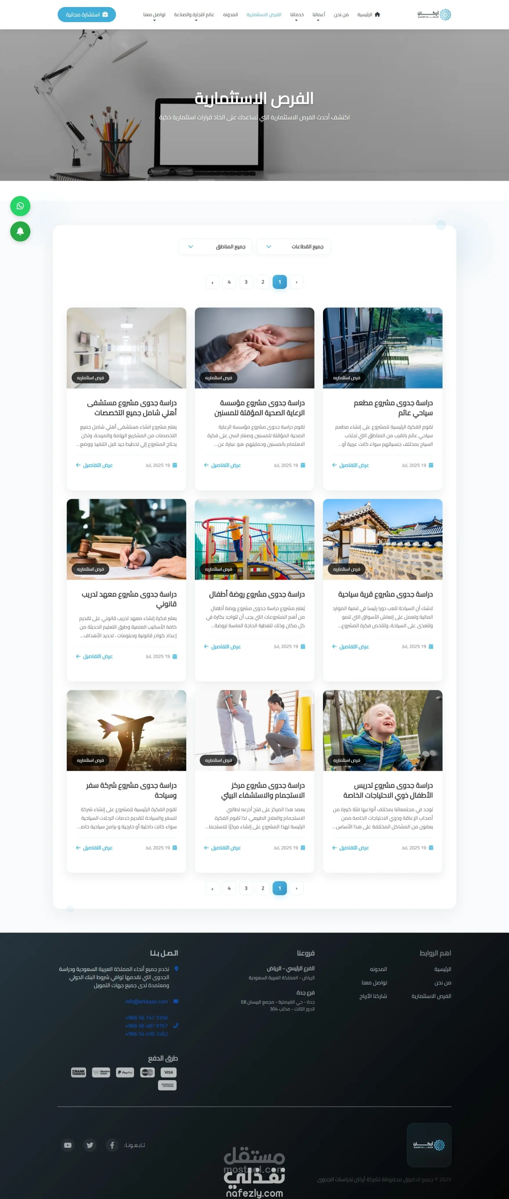 قسم فرص استثمارية لعرض أفكار مشاريع جاهزة + نماذج مبنية على دراسات حقيقية تساعد المستثمرين على اختيار مشروعات مناسبة.