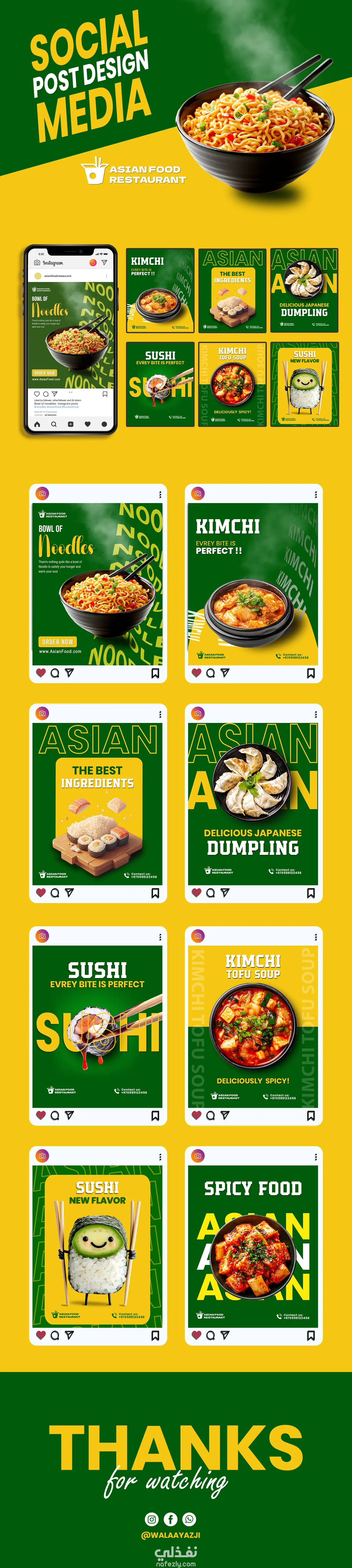 تصاميم بوستات سوشال ميديا لمطعم Asian Food Restaurant