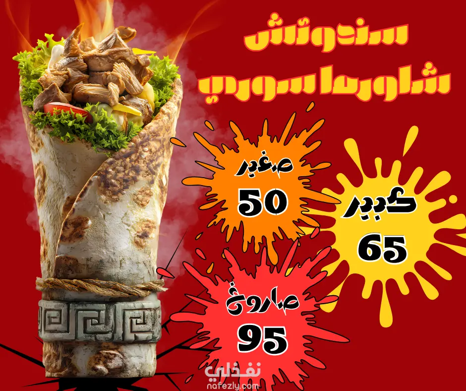 عملت على تطوير إعلان بصري متكامل يروّج لمنتج الشاورما السوري في مطعم دمشق.