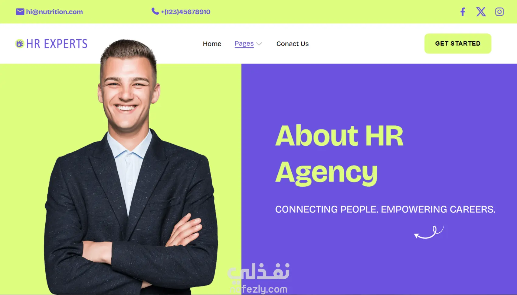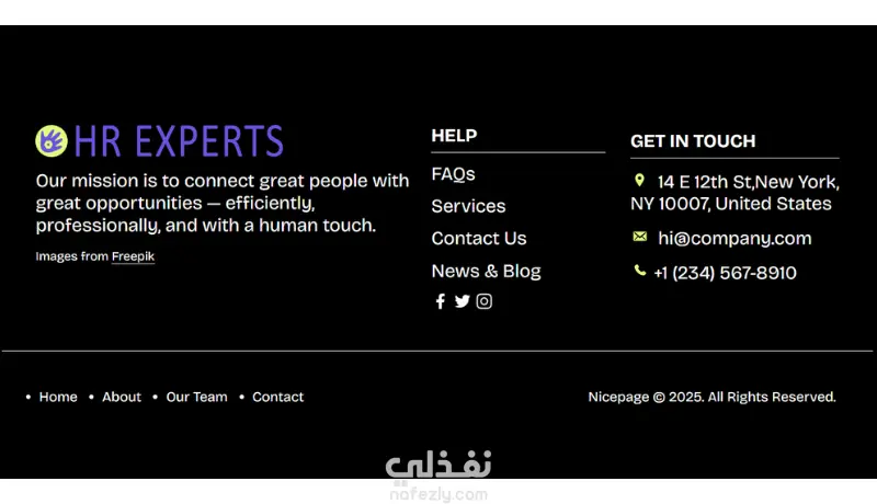 أنا غادة صابر — مطورة واجهات مواقع (Front-End Developer) جاهزة لتنفيذ موقعك بشكل جذّاب وسهل الاستخدام، باستخدام أحدث تقنيات الويب. قمت بتصميم نموذج تدريبي لموقع شركة HR يحتوي على أقسام احترافية مثل: About HR Agency – Trusted by hundreds of companies Our Vision – Building a Better Workforce Top Benefits Why Clients Choose Us? Shaping the Future of Work Ready for a new career? Explore jobs now! Subscribe for latest news & updates Our Amazing Team هذا النموذج يوضح قدرتي على: تصميم واجهات متناسقة وعصرية ترتيب الأقسام وتنسيق المحتوى باحتراف استخدام HTML – CSS – JavaScript تصميم متجاوب يعمل على الهاتف والتابلت والكمبيوتر سرعة تحميل ممتازة وتجربة مستخدم سلسة