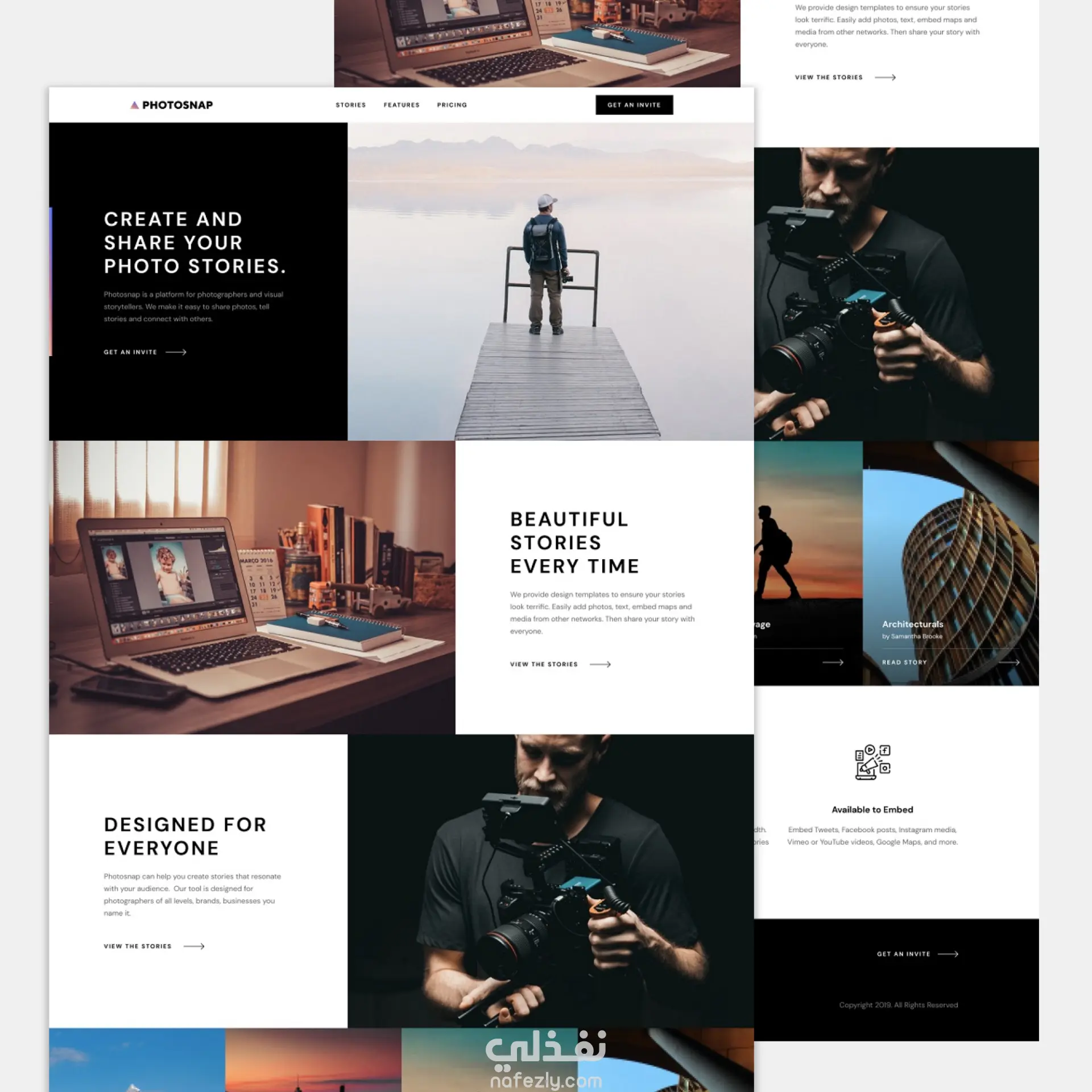 The website includes multiple sections such as features, stories, pricing, and a detailed landing page... built with attention to detail and smooth interactions.