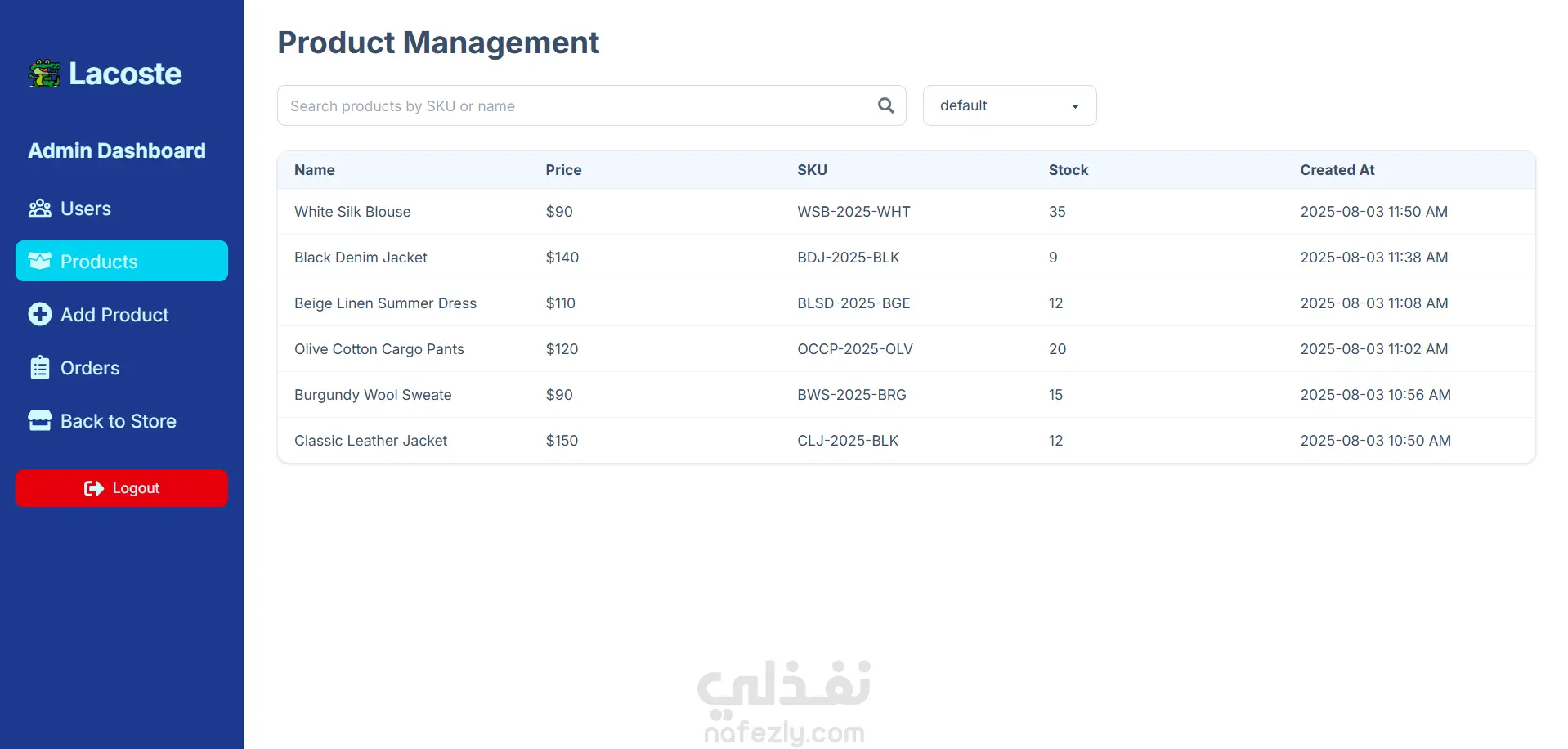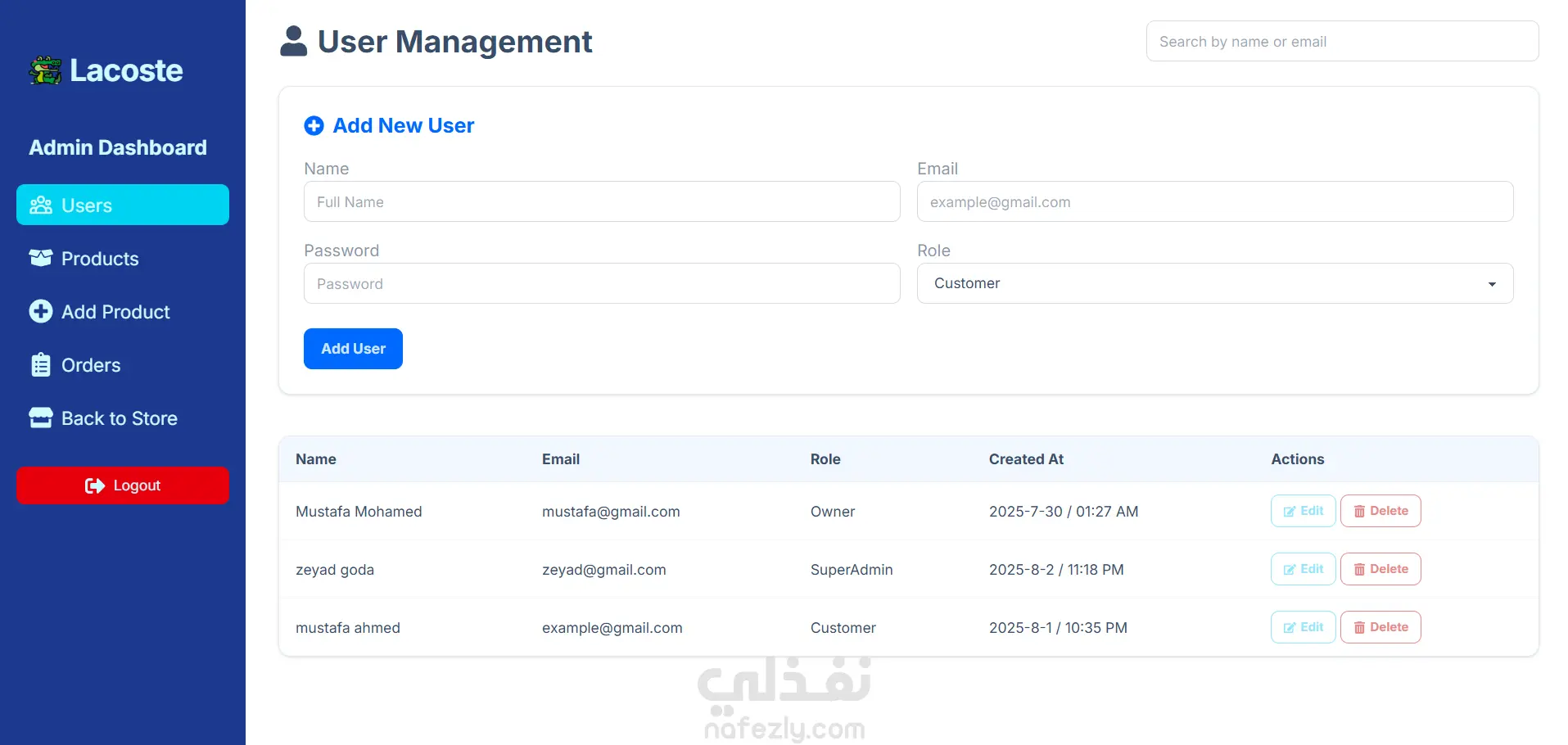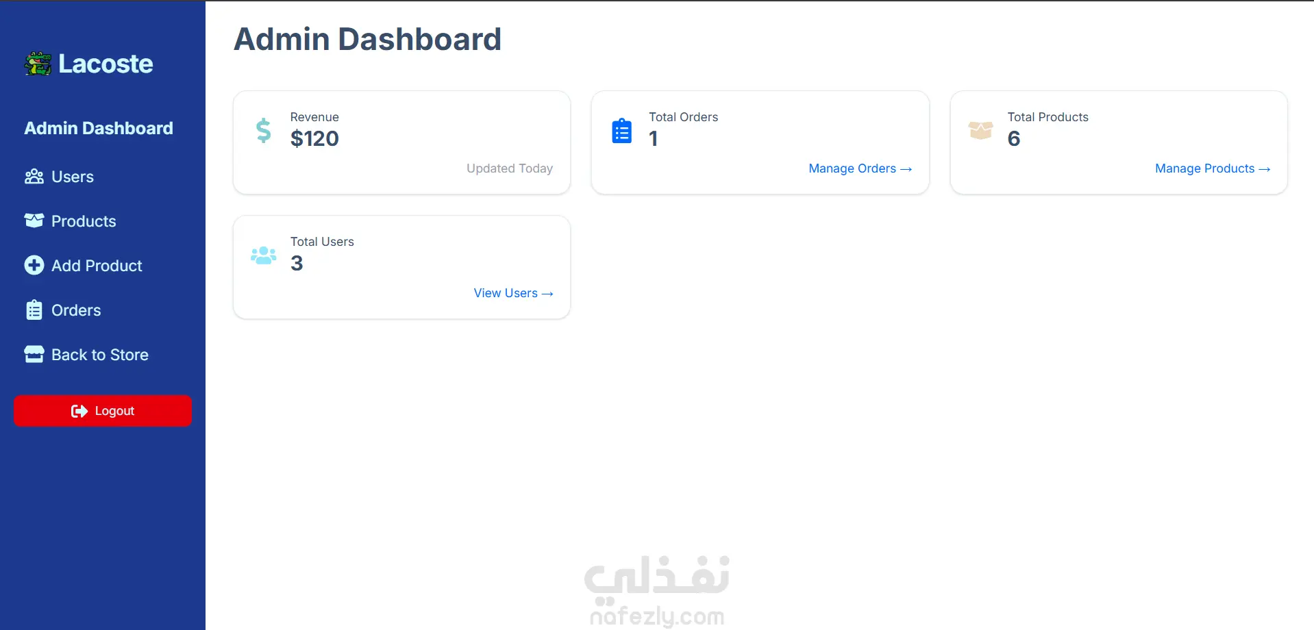 قمت بتطوير لوحة تحكم كاملة لإدارة متجر إلكتروني، الهدف منها إنها تخلّي صاحب المتجر يقدر يتحكم في كل حاجة بسهولة ومن مكان واحد. إيه اللي عملته في الداشبورد؟ إدارة المنتجات: تقدر من خلالها إضافة المنتجات، تعديل البيانات، رفع الصور، تحديد الأسعار والمخزون، وكل ده بشكل بسيط وواضح. إدارة الطلبات: عملت نظام يسمح لصاحب المتجر يشوف كل الطلبات اللي بتيجي من العملاء، ويقدر يغيّر حالة الطلب (قيد التنفيذ – تم الشحن – مكتمل)، ويشوف بيانات العميل والمنتجات المطلوبة. إدارة المستخدمين: فيه صفحة بتعرض كل المستخدمين المسجلين، مع إمكانية إدارة أدوارهم وصلاحياتهم. الإحصائيات والتقارير: الداشبورد بيعرض إحصائيات مهمة زي عدد الطلبات، إجمالي المبيعات، عدد العملاء، والمنتجات اللي قربت تخلص. ده بيساعد صاحب المتجر يفهم أداء متجره بشكل سريع وبسيط. تأمين النظام: عملت تسجيل دخول آمن للمدير باستخدام نظام JWT، مع حماية الصفحات المخصصة للإدارة بحيث محدّش يقدر يدخل غير المسؤول. لوحة سهلة الاستخدام: اهتميت إن شكل الداشبورد يكون بسيط وواضح، والأقسام مترتبة، عشان صاحب المتجر يقدر يوصل للي عايزه بسهولة ومن غير تعقيد.