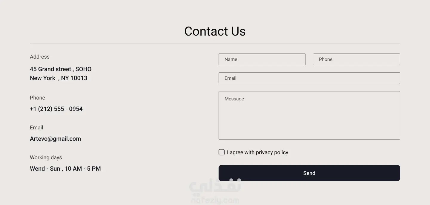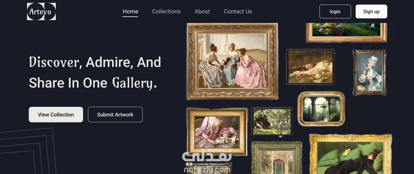 تصميم صفحة هيوط لعرض معرض فني بشكل بصري جذاب يبرز الهوية الفنية للمكان و يقدم تجربة مستخدم سلسة وواضحة