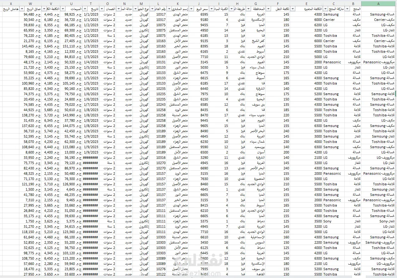 تقرير تحليل محل إلكترونيات - بإستخدام الإكسل
