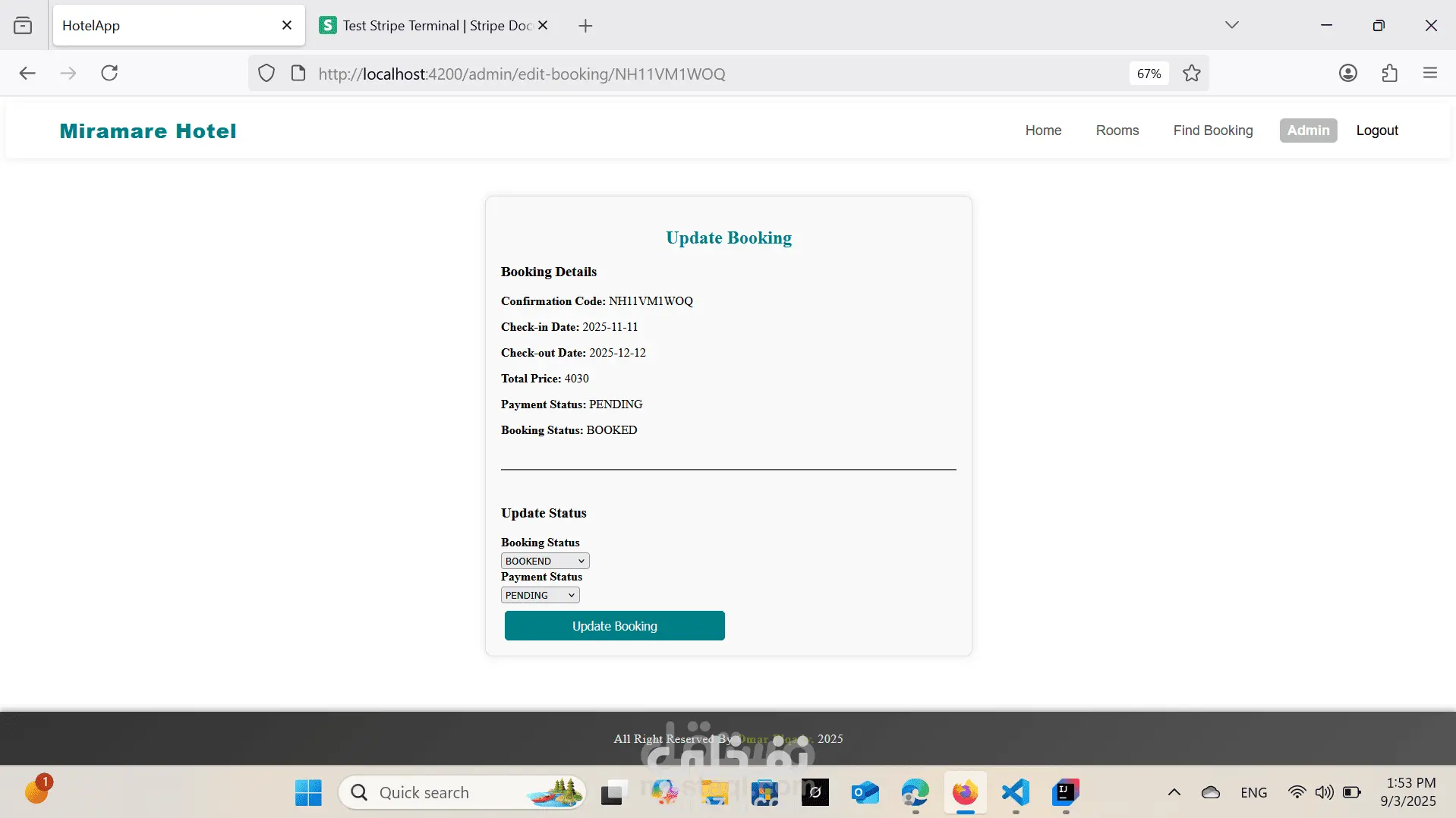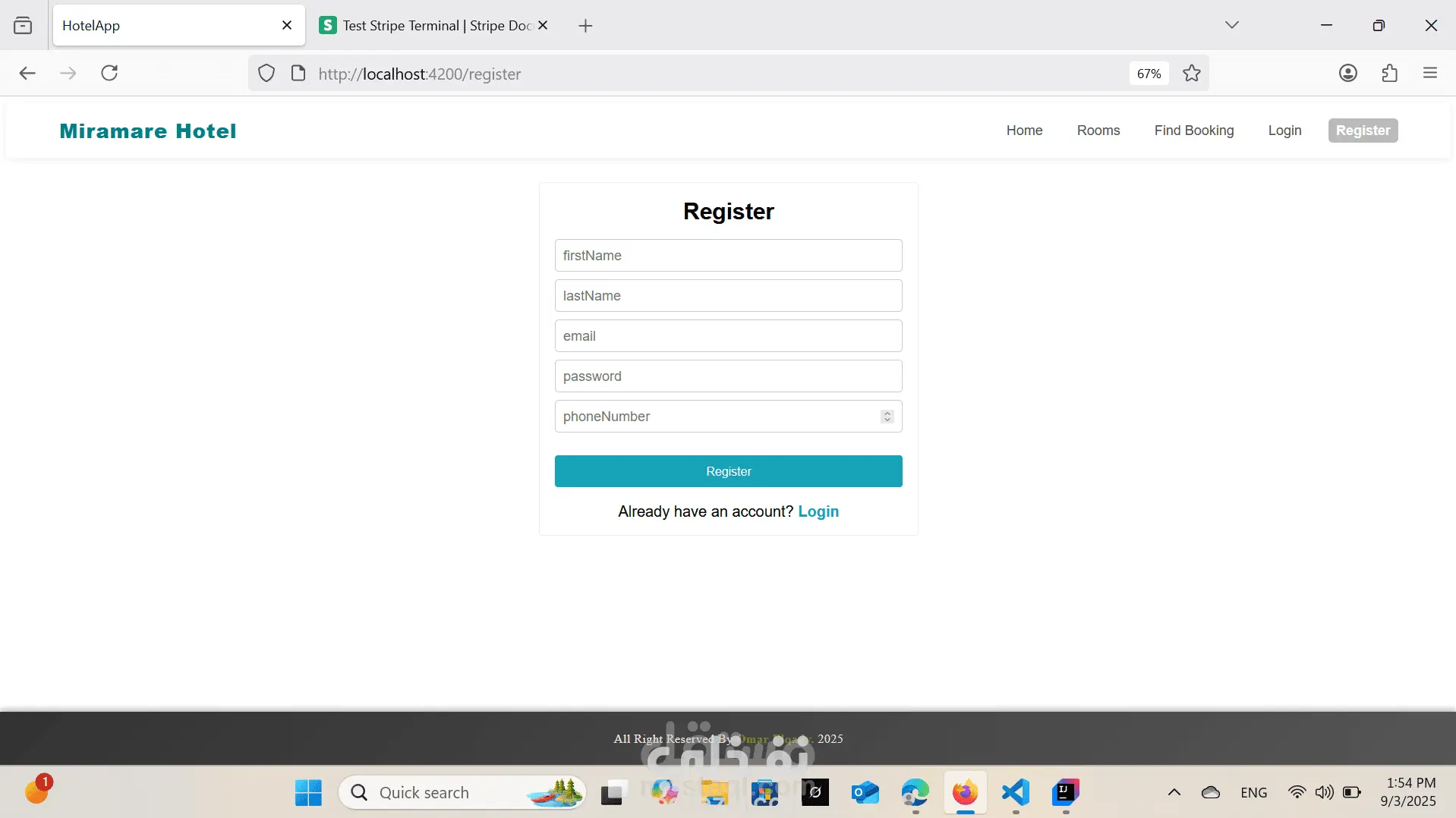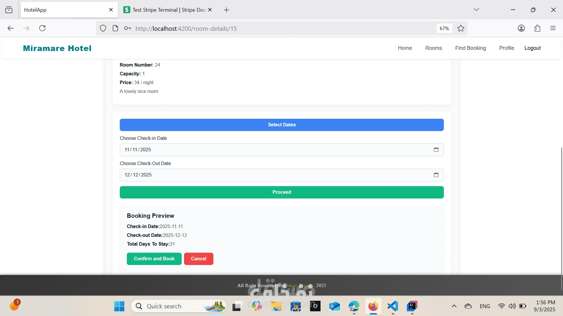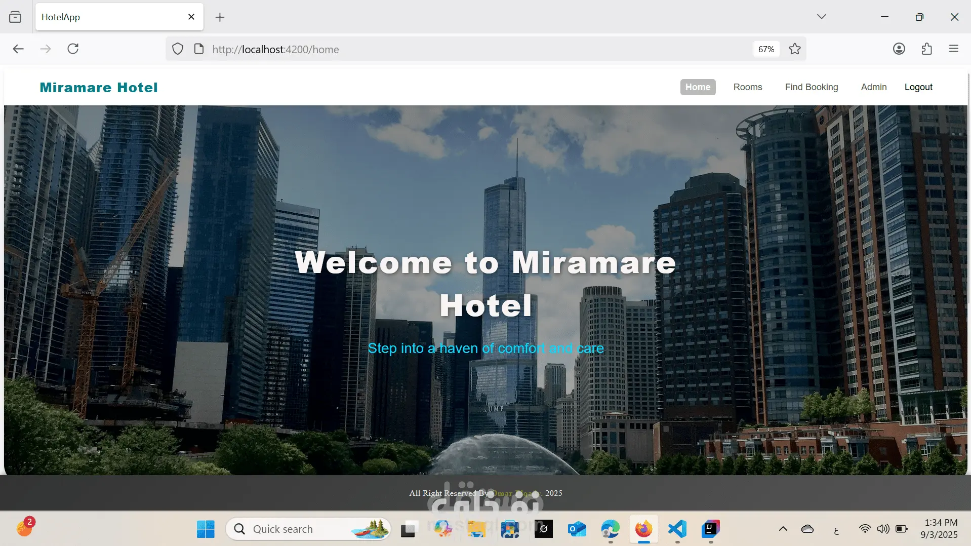 قمت بتصميم موقع Hotel Booking جذاب ومكون من صفحات للمسئول وصفحات للمستخدم العادي باستخدام Angular, java(spring boot), mysql | جذاب | متجاوب | مناسب لجميع الاجهزه | امن | مكون من مكتبات احترافيه يقوم المستخدم ب عمل تسجيل دخول وتسجيل خروج والدفع الامن