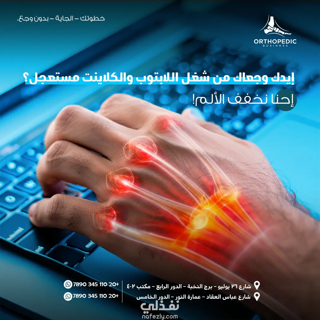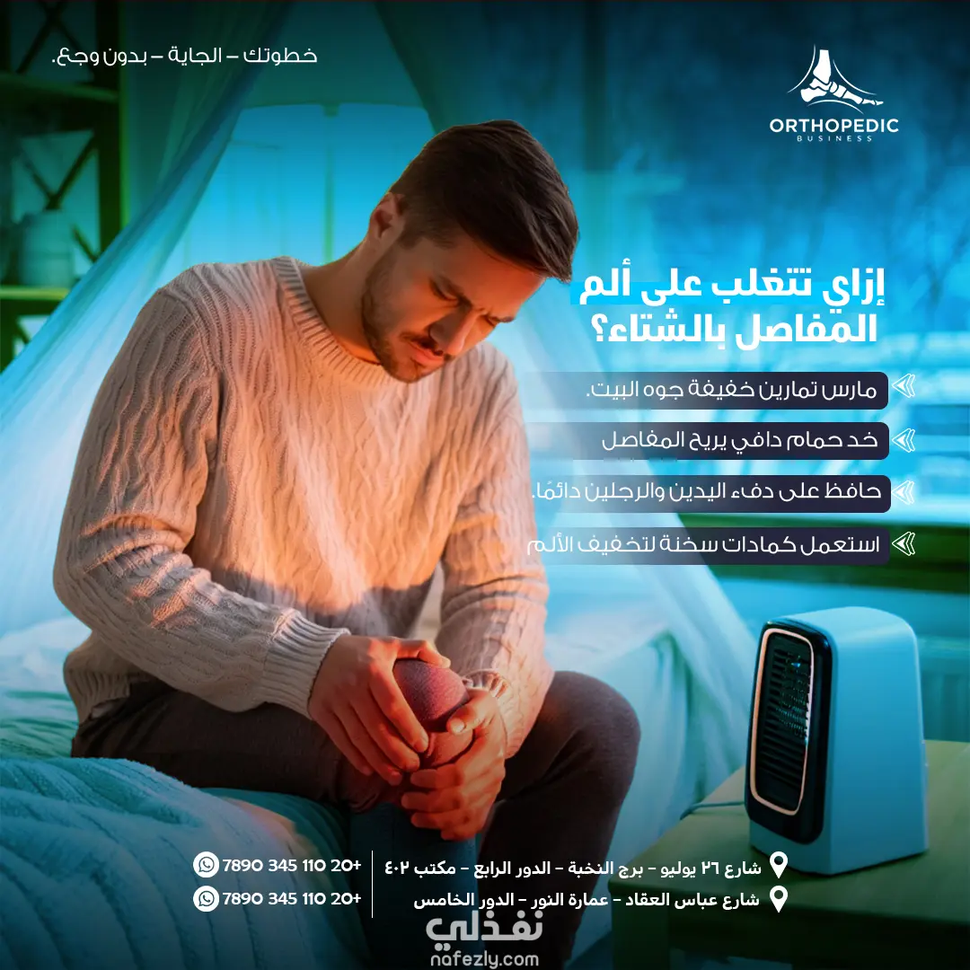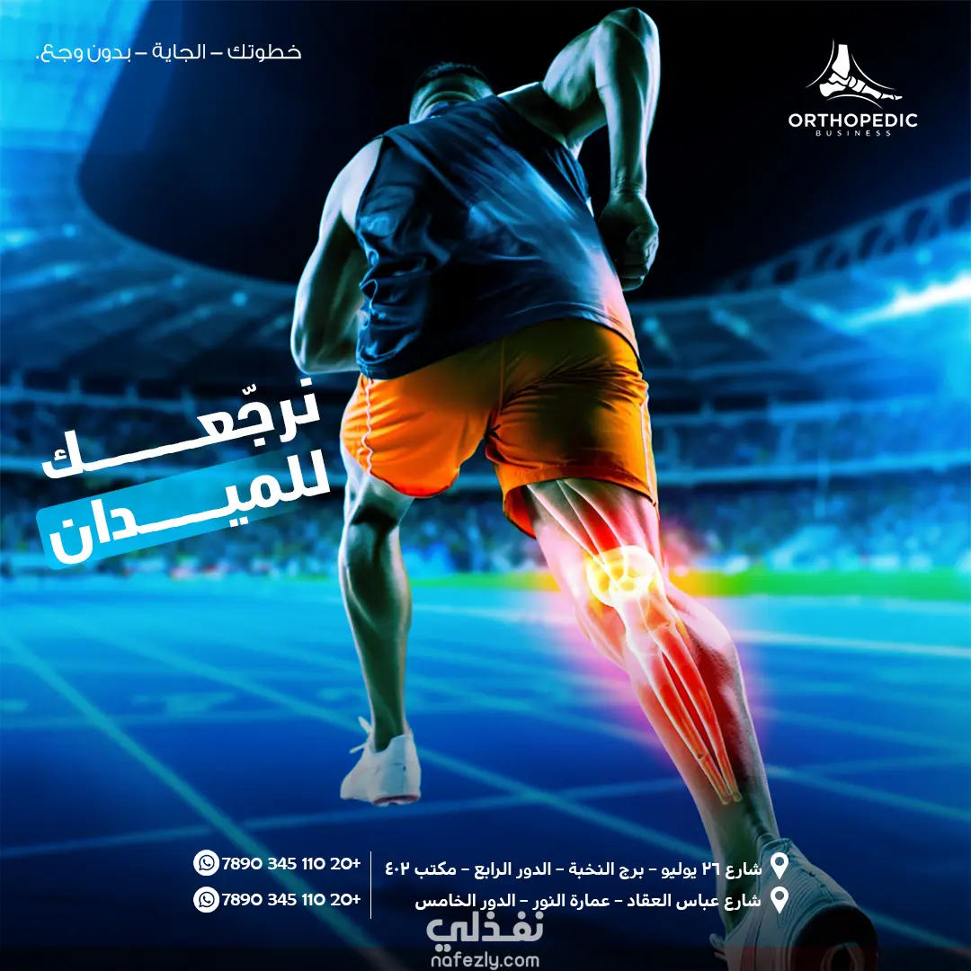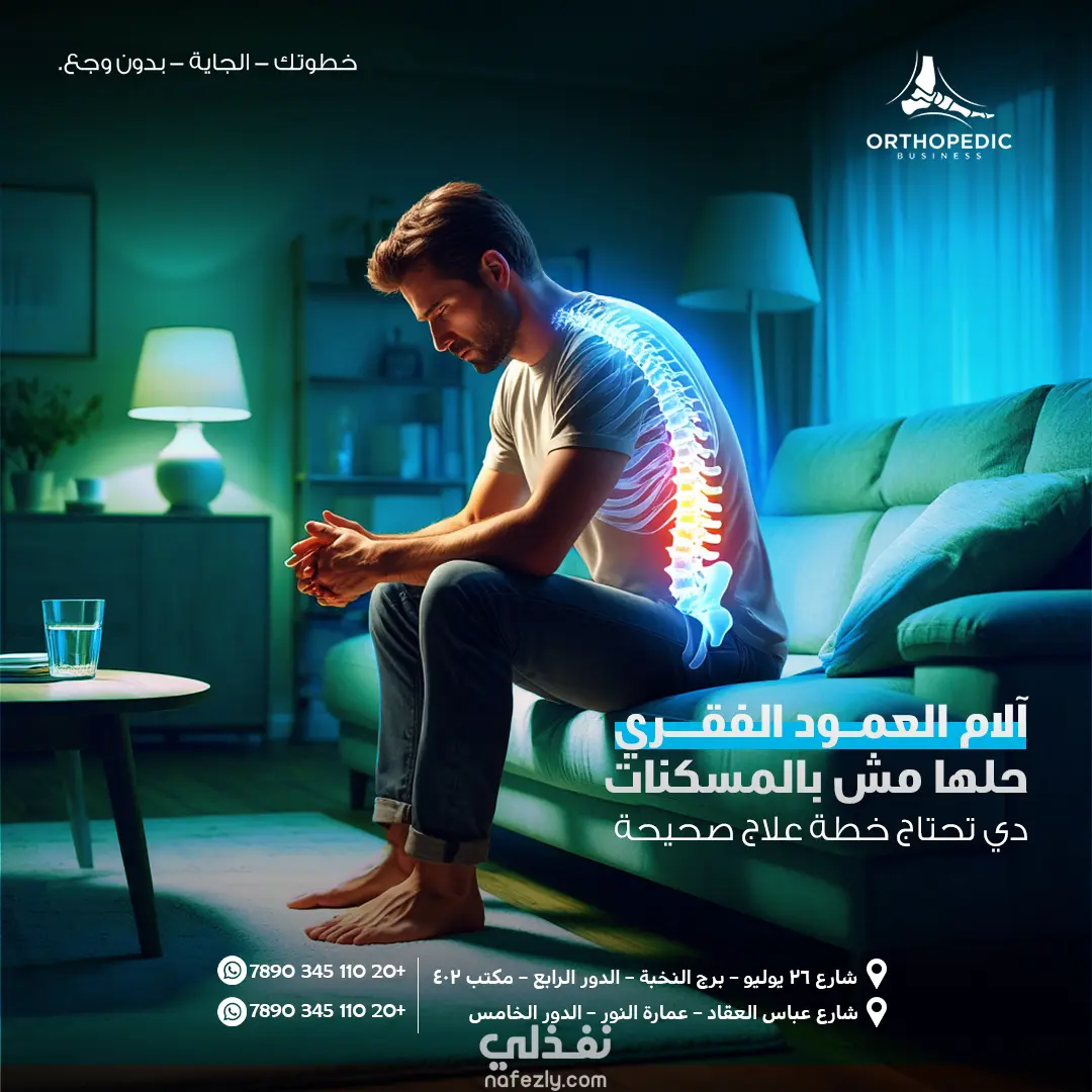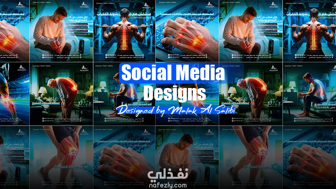 قمت بتصميم محتوى سوشال ميديا لطبيب عظام، مركزًا على آلام المفاصل والعظام. اعتمدت ألوانًا هادئة ومريحة، مع إبراز مناطق الألم بشكل واضح باستخدام الماسك والإضاءة المناسبة. أضفت نصوصًا مختصرة وجذابة لتوعية المرضى وتوضيح الخدمات، مع تصميم متناسق واحترافي يحفّز التفاعل ويبرز مستوى الاحترافية