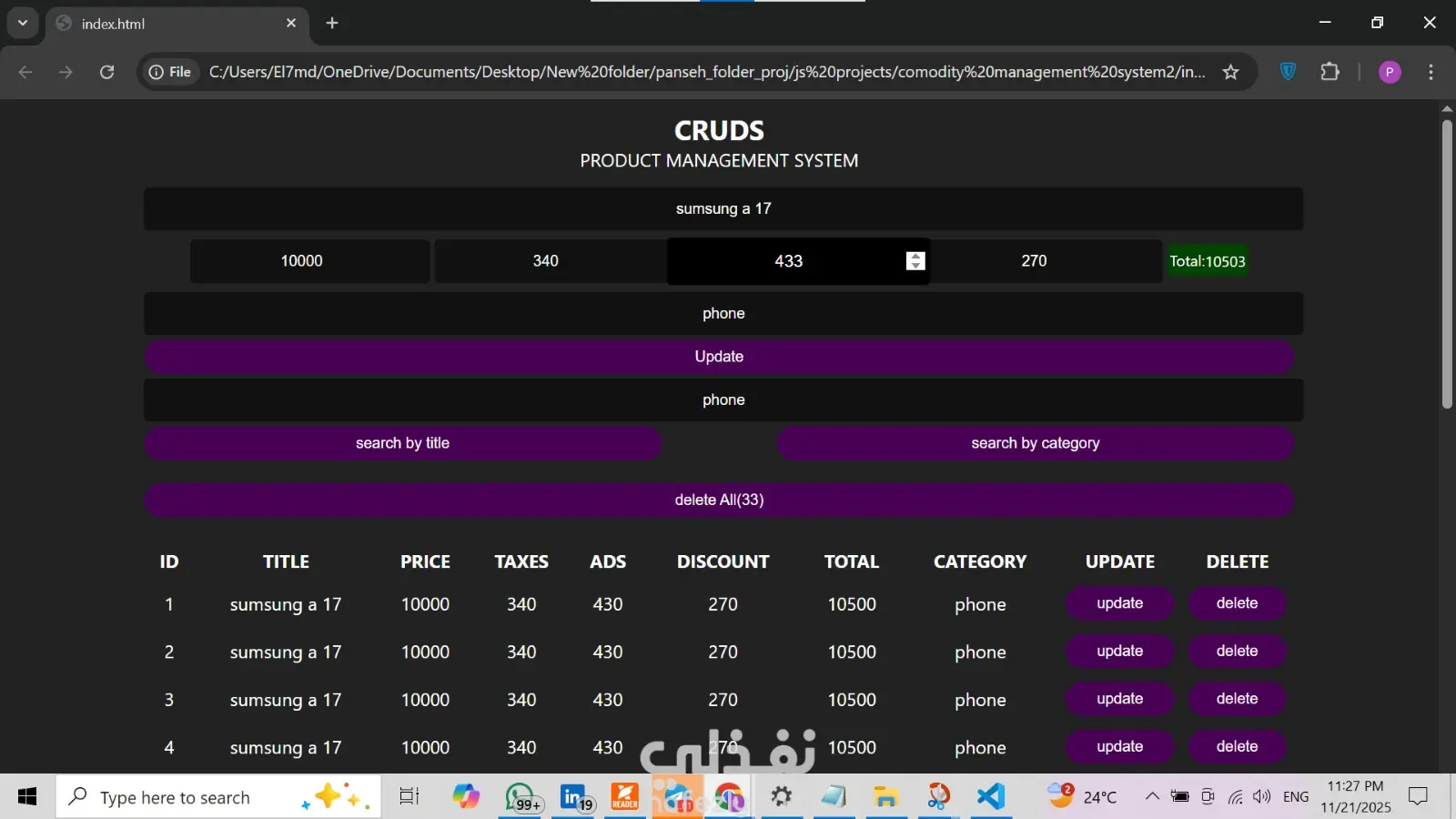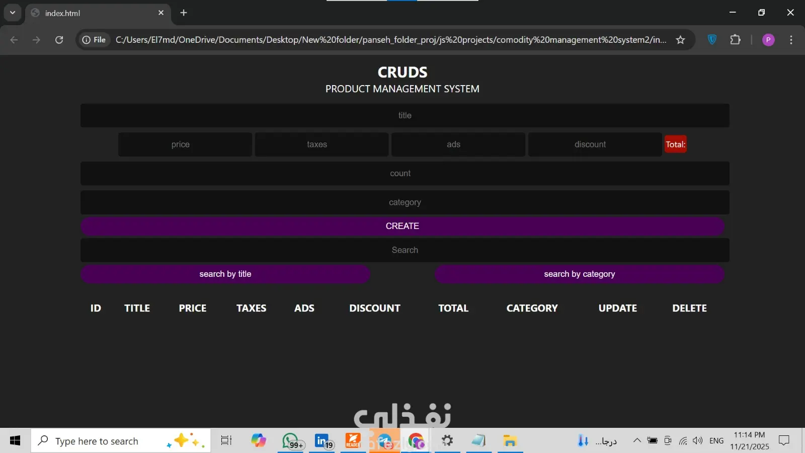الموقع ده هو تطبيق ويب بسيط لإدارة المنتجات (CRUD Application)