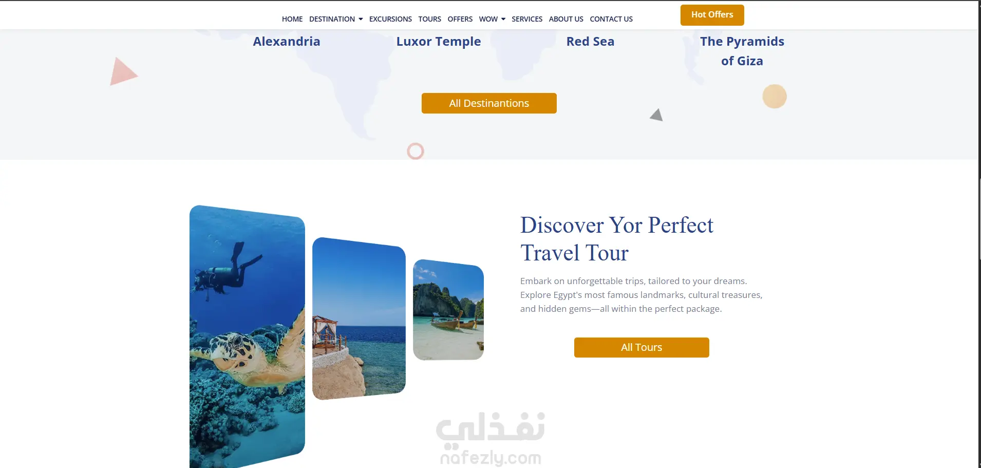 مشروع احترافي متكامل قمت فيه بتطوير منصة سياحية موجهة للأجانب الراغبين في زيارة مصر واكتشاف معالمها. المنصة تعمل كبوابة عرض شاملة توفر تجربة سلسة ومتكاملة لحجز الباقات السياحية واستكشاف الوجهات المختلفة.