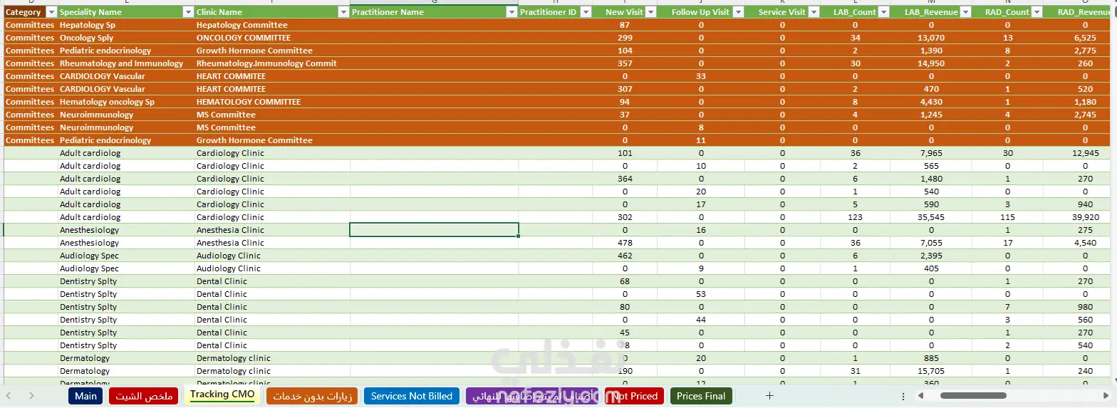 قمت بتنفيذ مشروع متكامل automation وتنظيف وتجهيز التقارير الطبية باستخدام Power Query داخل Excel، بهدف تسريع عمليات التحليل وتقليل الأخطاء وتحويل البيانات الخام إلى نموذج تحليلي جاهز للاستخدام. شمل المشروع: تنظيف البيانات (Data Cleaning) وإزالة التكرارات والأخطاء الشائعة. معالجة الجداول المختلفة ودمجها بشكل ديناميكي لتكوين مصدر بيانات موحد. تحويل الأعمدة وتنسيق أنواع البيانات بما يتوافق مع المعايير التشغيلية. إنشاء خطوات معالجة Automated Steps يمكن إعادة تطبيقها على أي ملف جديد بضغطة واحدة. إعداد هيكل بيانات احترافي يدعم التحليل باستخدام Pivot Tables وDashboards. تحسين التقارير الخاصة بالزيارات، الخدمات، التحاليل، والإشعاعات تلقائيًا دون تدخل يدوي. نتيجة المشروع كانت نظامًا يعتمد على Automation كامل لتجهيز التقارير، مما وفر وقتًا كبيرًا على العميل وضمن دقة وسرعة في الإنتاج.