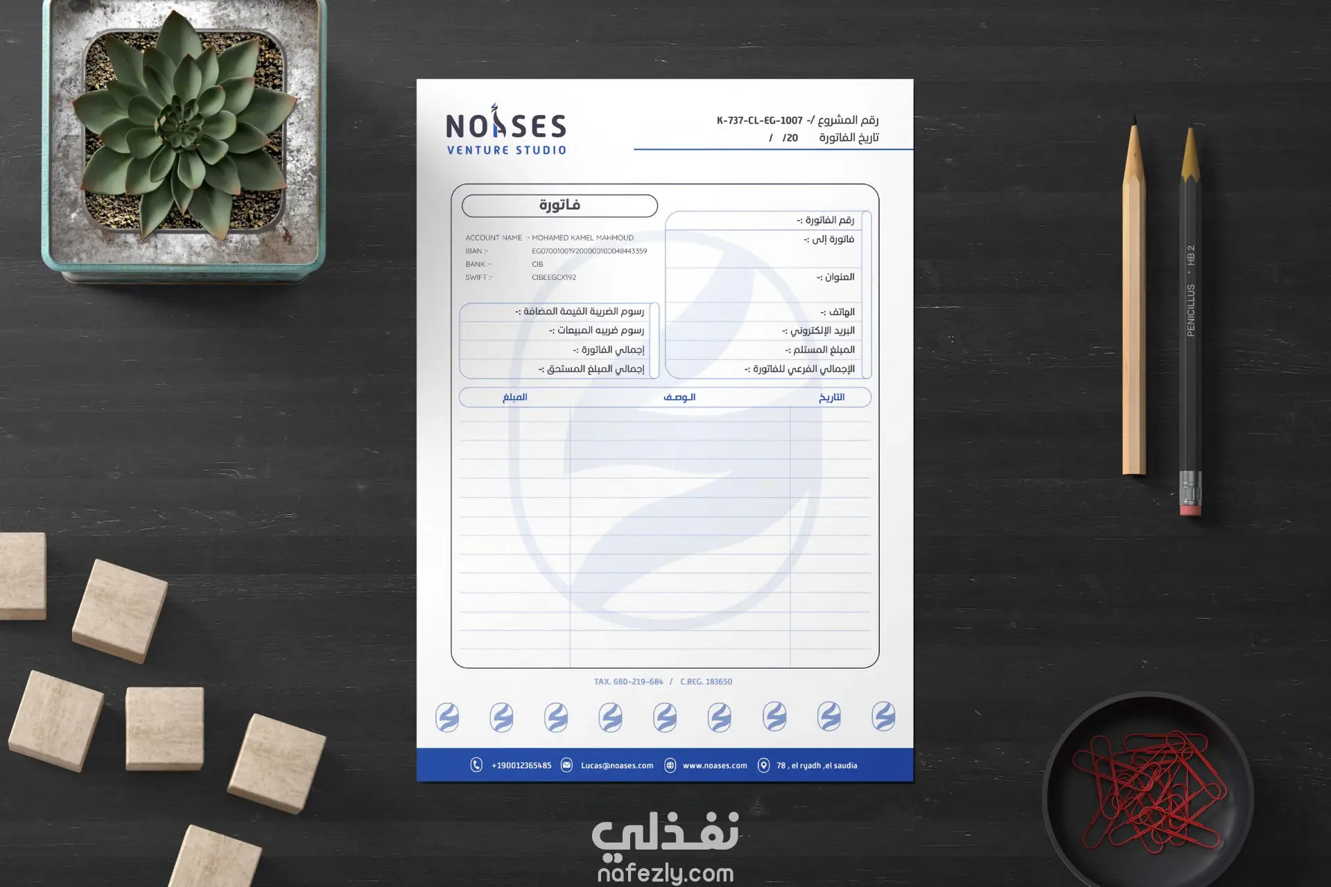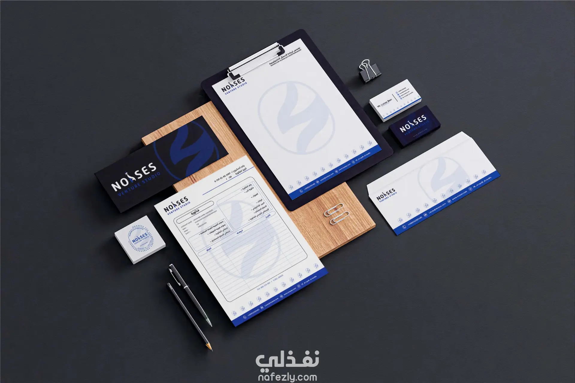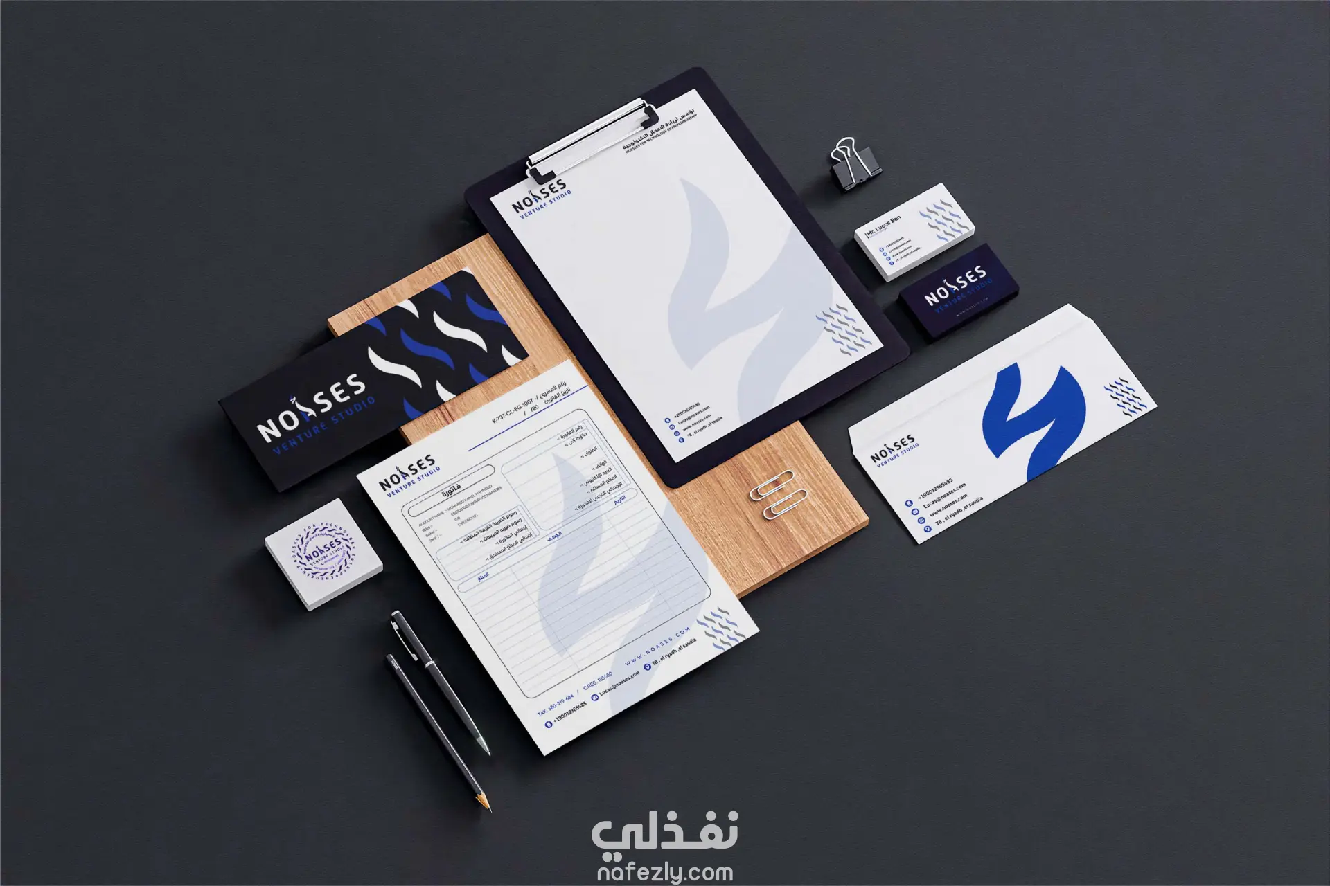 تصميم شعار وهوية بصرية كاملة لاستوديو Noases Venture Studio، تشمل الورقيات، البزنس كارد، والفواتير بتنسيق احترافي يوحد النمط والألوان بين جميع العناصر. الحل البصري يعكس روح الابتكار ويعزز تميز العلامة التجارية عبر جميع منصات التواصل والمواد المكتبية.