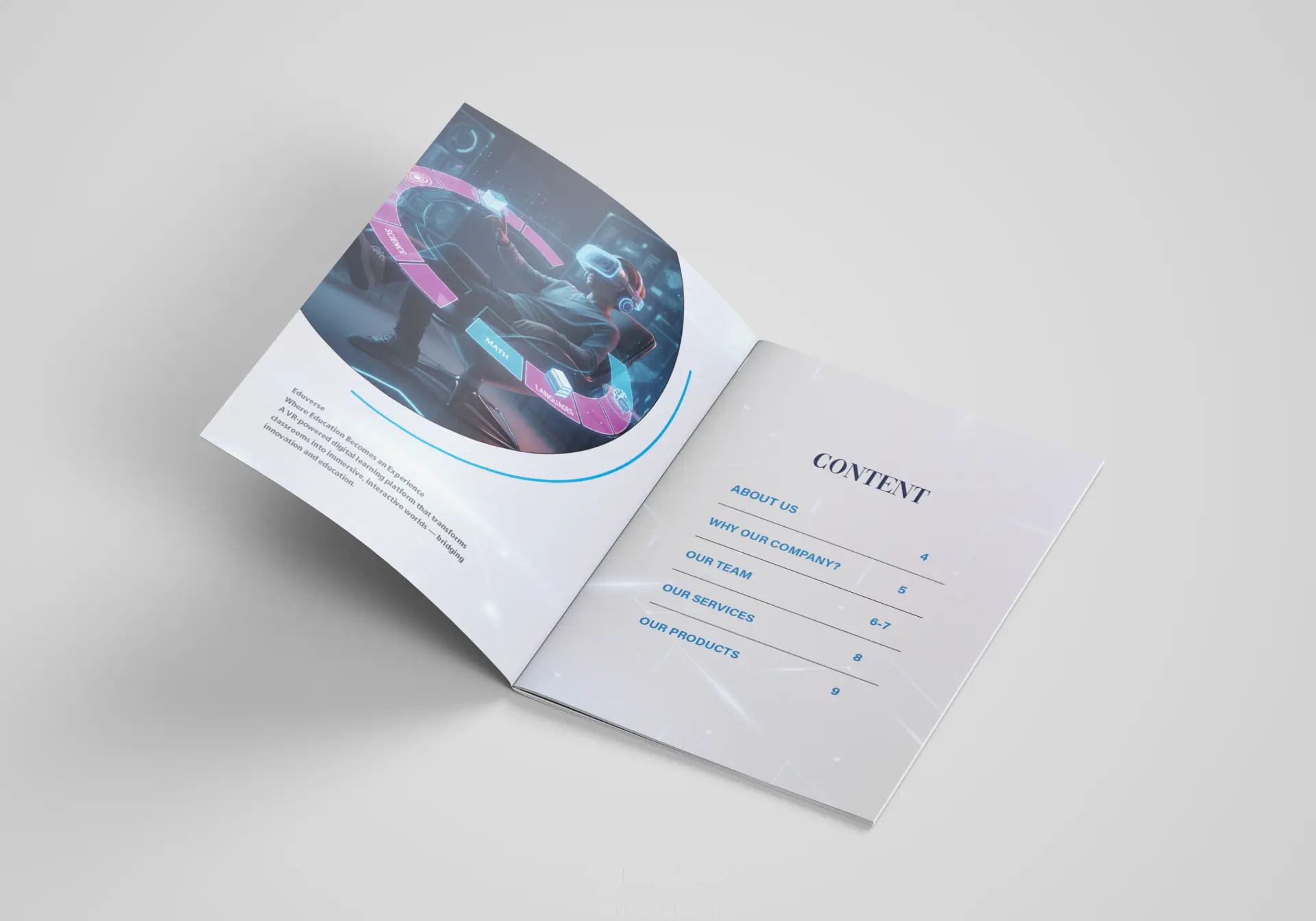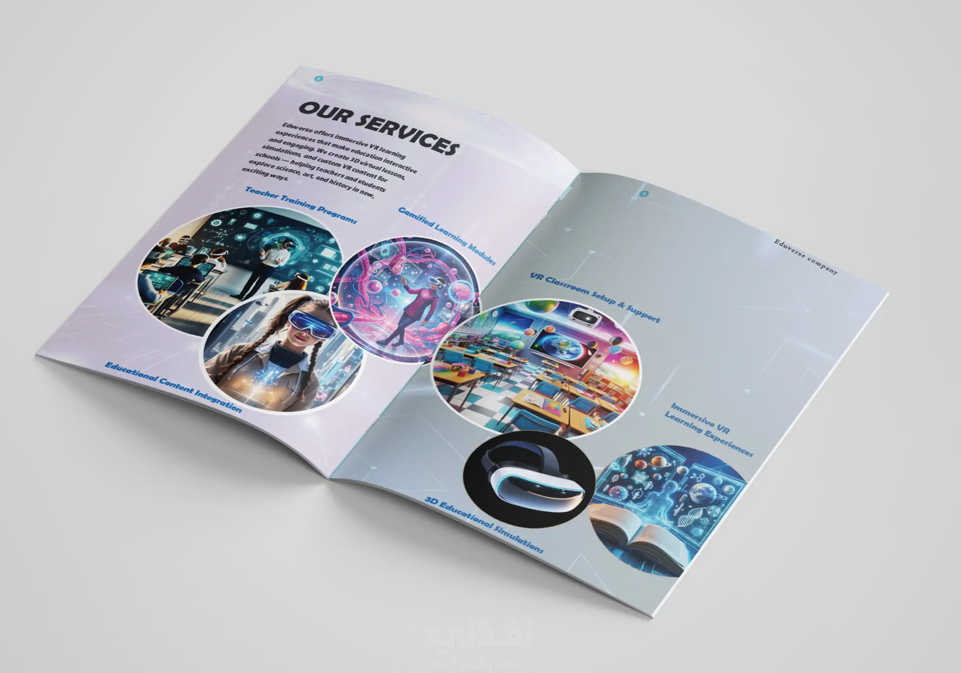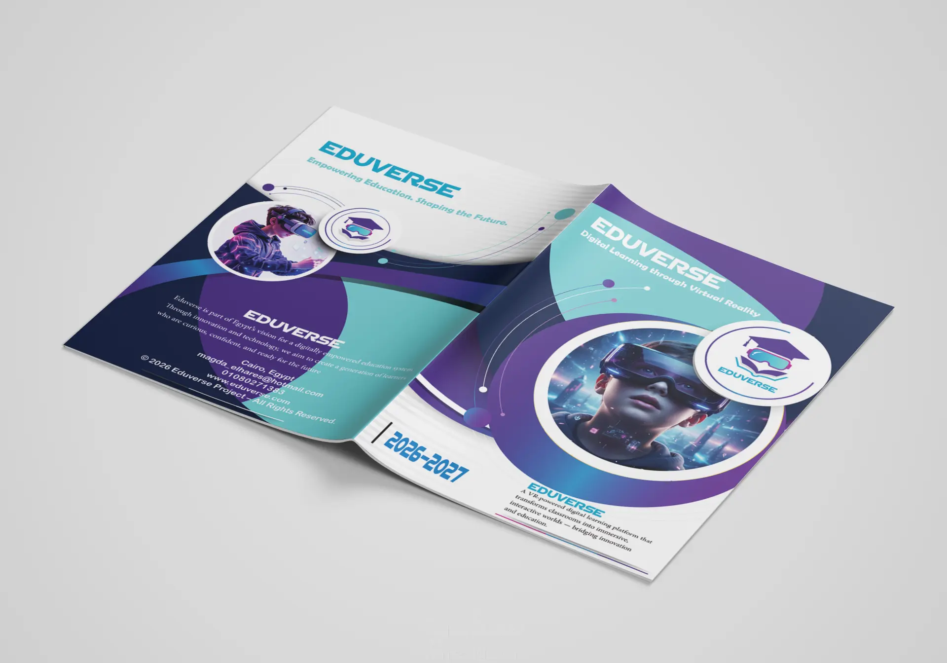 تصميم بروفايل كامل لشركة Eduverse، الشركة التعليمية التي تهدف إلى تقديم تجارب تعلم مبتكرة وفعّالة. البروفايل يبرز رؤية ورسالة الشركة، خدماتها التعليمية، إنجازاتها، وفريق العمل بطريقة جذابة، عصرية، واحترافية تساعد على جذب الطلاب والشركاء والمستثمرين. تصميم واضح، مرتب، وجاهز للطباعة أو العرض الرقمي.