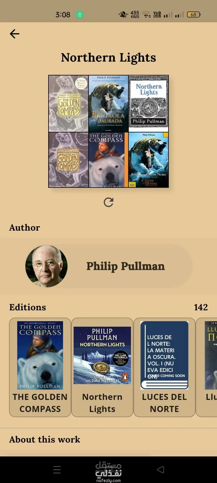 يحتوي كل عمل على قائمة بالإصدارات المختلفة، ويمكن للمستخدم عرض تفاصيل الإصدار مثل عدد الصفحات، تاريخ النشر، دور النشر، مدى توفر النسخة، وروابط القراءة أو الاستعارة إن وُجدت.