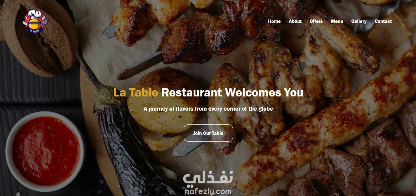 La Table هو موقع مطعم فاين داينينغ يعرض تاريخه وقائمته والعروض الخاصة والمعرض البصري ومعلومات التواصل. تم بناؤه باستخدام HTML وCSS وBootstrap 5، ويوفّر تصميمًا متجاوبًا يعمل بسلاسة على أجهزة الكمبيوتر والموبايل.