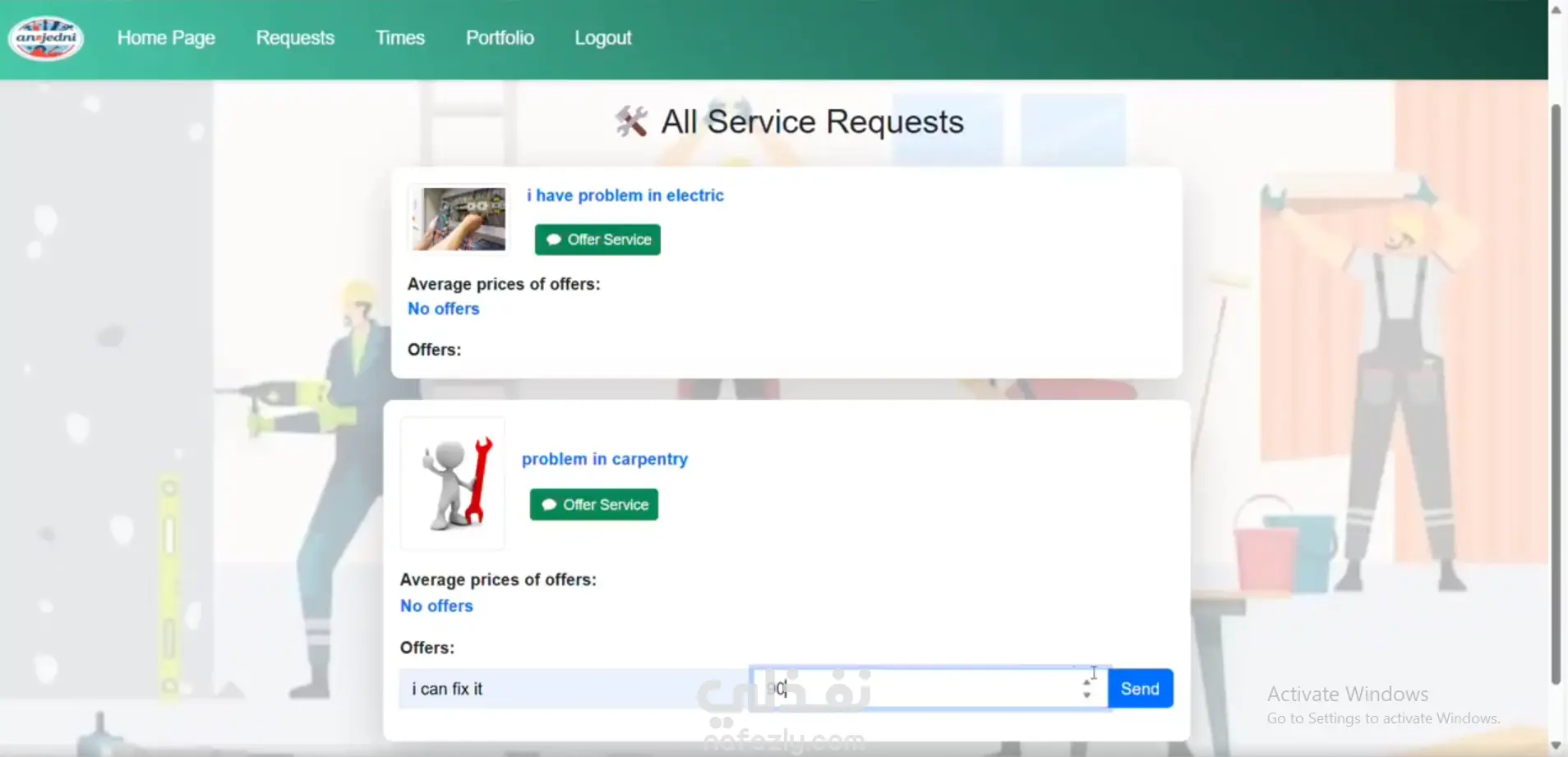 منصة ويب تربط بين العملاء ومقدمي الخدمات الخاصه بالمنزل (سباك ، نجار ، كهربائي ..... الخ ) بطريقة مشابهة لمواقع الفريلانس. يمكن للعملاء نشر طلباتهم أو المشاكل التي يريدون حلها، ويقوم مقدمو الخدمات بتقديم عروضهم مع السعر والوصف لتلبية الطلب. تسهل المنصة اختيار أفضل عرض ومتابعة المشاريع حتى إتمامها.