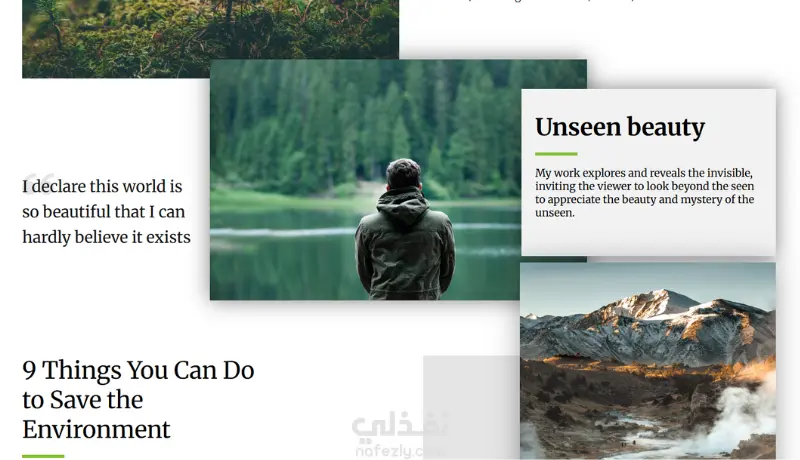 هذا نموذج لموقع قمت بتصميمه وتطويره عن الطبيعة، يتميز بتنسيق هادئ ومحتوى بصري جذاب يعكس جمال المناظر الطبيعية. الموقع يحتوي على عدة أقسام منظمة، وصور عالية الجودة، وسلايدر تفاعلي، بالإضافة إلى تصميم متجاوب يعمل بسلاسة على جميع الشاشات، سواء الموبايل أو التابلت أو الكمبيوتر. يهدف هذا النموذج إلى عرض قدرتي على تنفيذ مواقع حديثة، سلسة، وسهلة التصفح مع الاهتمام بالتفاصيل وتجربة المستخدم.