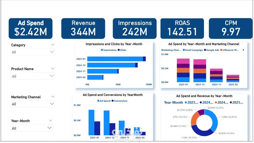 تحليل البيانات وتنظيفها كما يمكن عمل داشبورد على Power BI