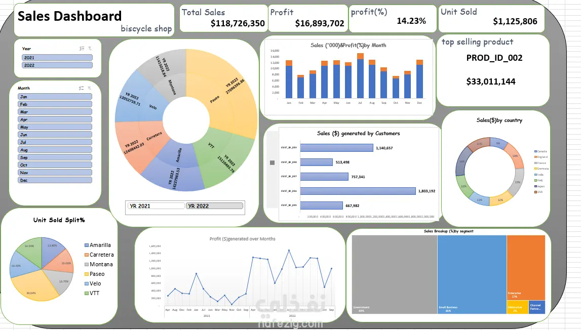 أقدم لك تصميم داشبورد تفاعلية واحترافية على Excel تُحويل بيانات المبيعات أو المشاريع الخاصة بك إلى لوحة معلومات ديناميكية سهلة القراءة وسريعة التحليل. الداشبورد المعروضة مثال لعمل سابق، وتتميز بـ: تصميم بصري احترافي يناسب العروض والتقارير الإدارية. تحليل شامل للبيانات يشمل: إجمالي المبيعات الأرباح ونسب الربحية المنتجات الأكثر مبيعًا توزيع المبيعات حسب الدول توزيع الوحدات المباعة تحليل حسب الفترات الزمنية (سنة – شهر) أداء العملاء تفاصيل حسب القطاعات والشرائح فلاتر ديناميكية (Slicers) لتغيير البيانات المعروضة فورًا مثل: السنة – الشهر – المنتج – الدولة… مخططات متعددة: أعمدة، دوائر، Doughnut، Line chart، Treemap، وغيرها. تحديث تلقائي عند تغيير البيانات في ملف Excel الأساسي. ماذا ستحصل عليه؟ داشبورد مخصصة بالكامل حسب طبيعة عملك. تصميم أنيق وسهل الاستخدام. معالجة وتنظيف البيانات قبل بناء التقرير. ملف جاهز للاستخدام والعرض على الإدارة أو العملاء. إذا كان لديك ملف بيانات جاهز، يمكنني البدء فورًا في بناء داشبورد مشابهة أو أفضل وفق احتياجاتك.