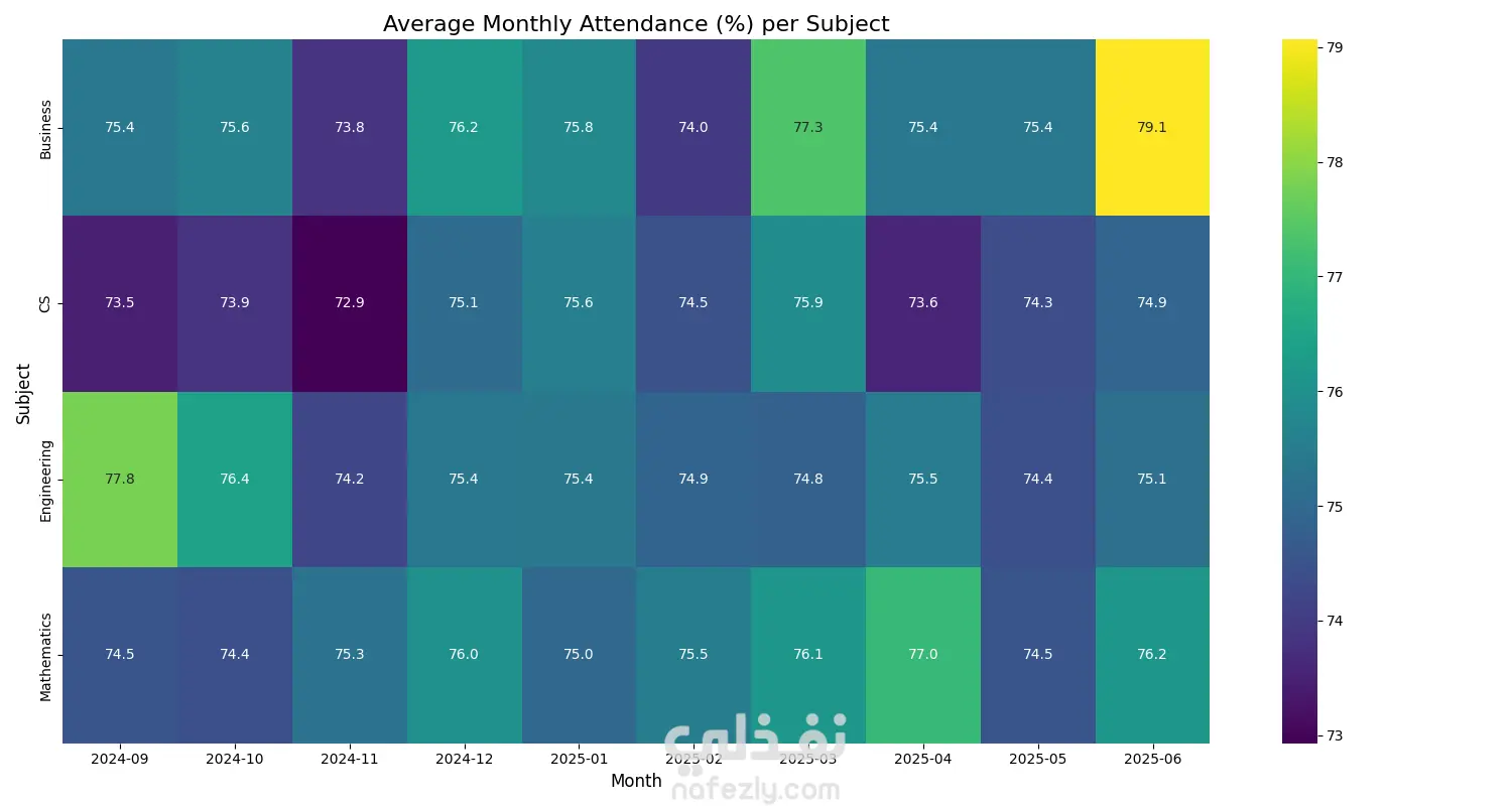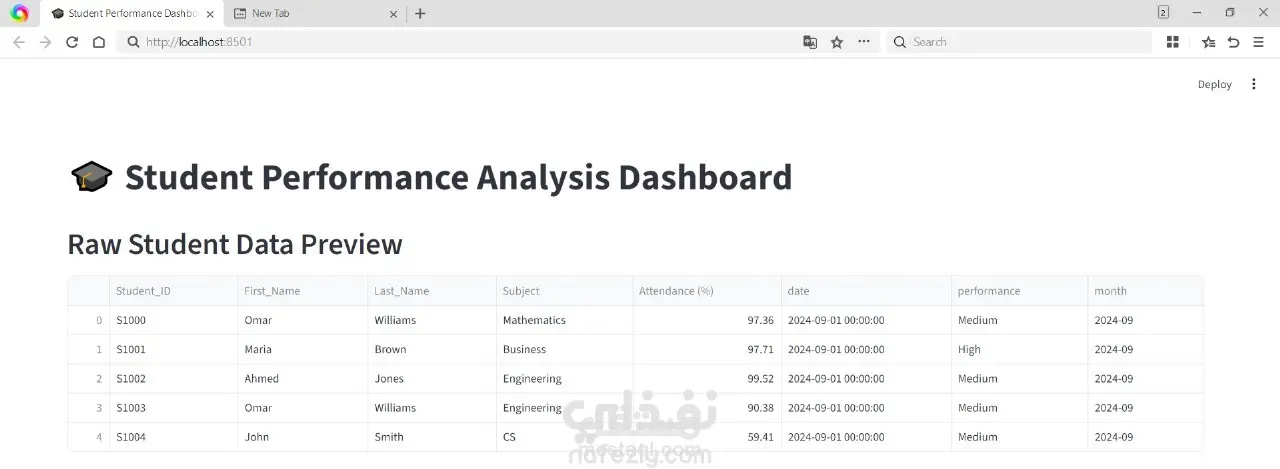 يهدف هذا المشروع إلى تحويل بيانات أداء وحضور الطلاب الأولية (ملف CSV) إلى رؤى عملية وقابلة للتنفيذ من خلال بناء لوحة معلومات تفاعلية حديثة باستخدام إطار عمل Streamlit. كانت الأهداف الرئيسية هي: تنظيف ومعالجة البيانات لضمان دقة التحليل. تحديد اتجاهات الأداء الرئيسية للطلاب شهرياً (مرتفع، متوسط). مراقبة معدلات الحضور عبر المواد الدراسية المختلفة. إنشاء واجهة مستخدم (Dashboard) سهلة الاستخدام لعرض جميع النتائج.