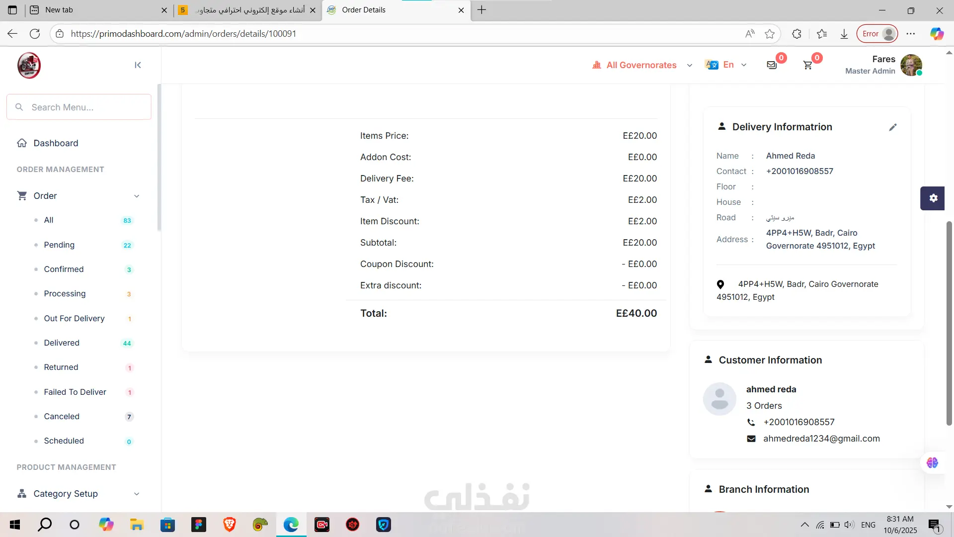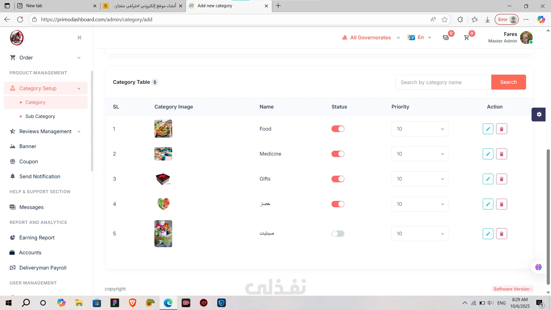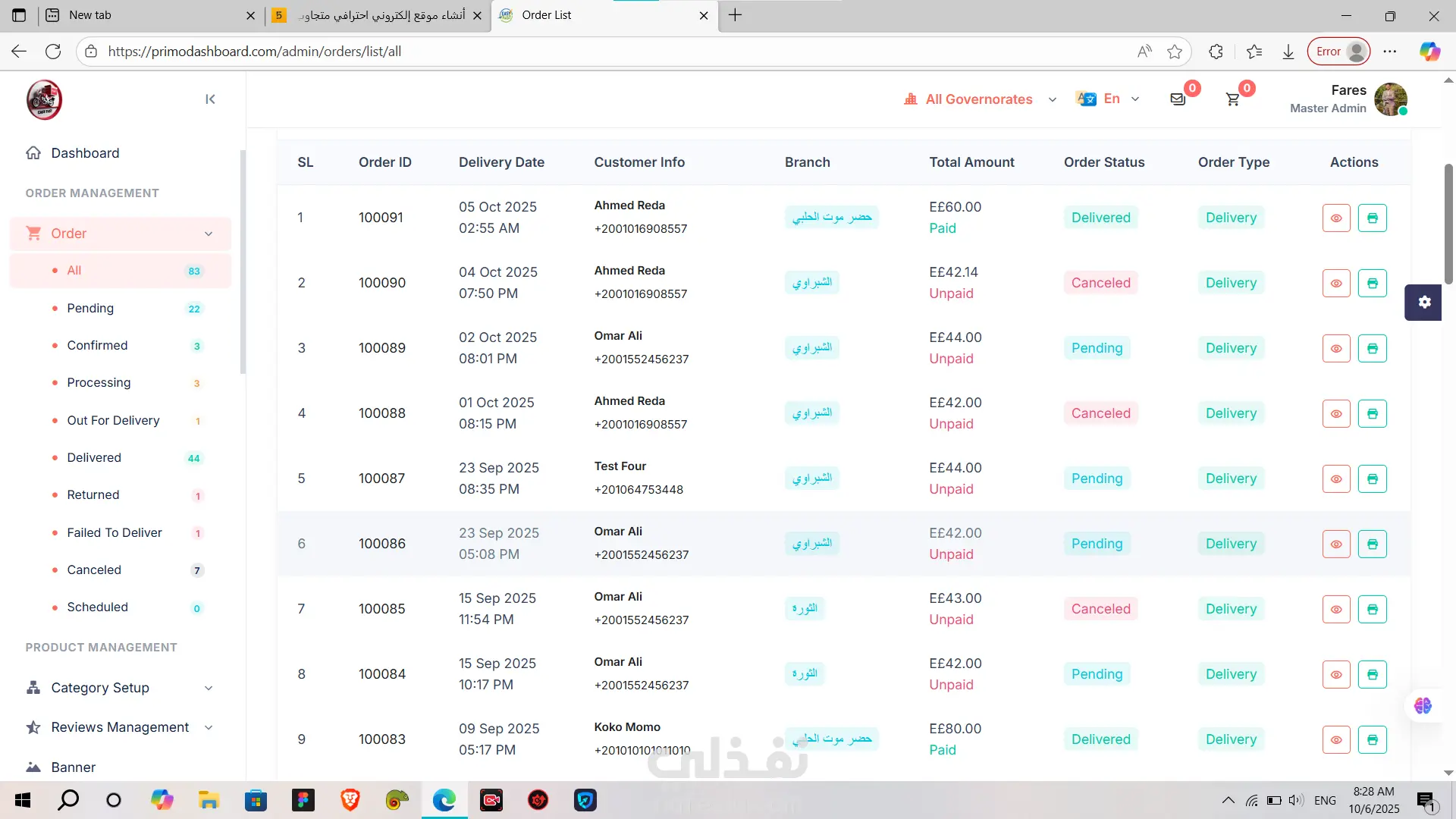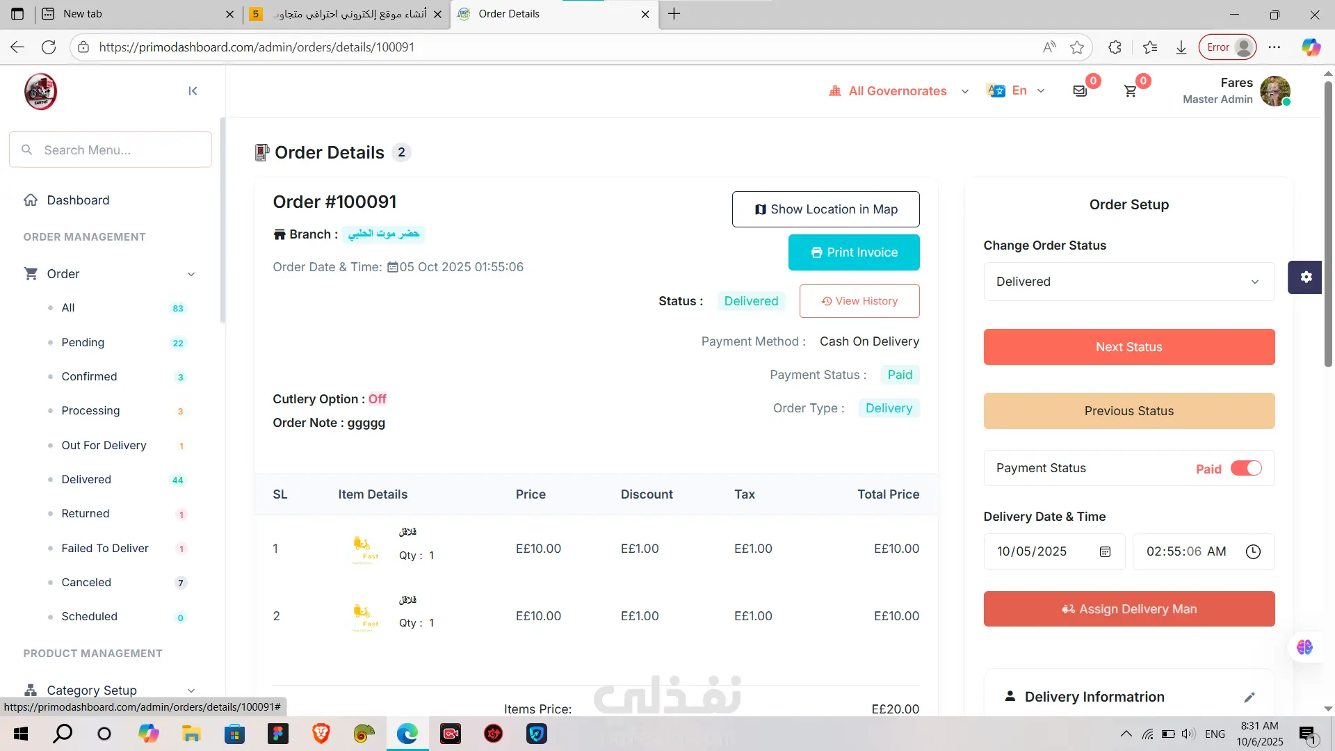 PrimoDashboard هي لوحة تحكم (Admin Dashboard) احترافية متكاملة لإدارة المطاعم وخدمات التوصيل (Delivery).