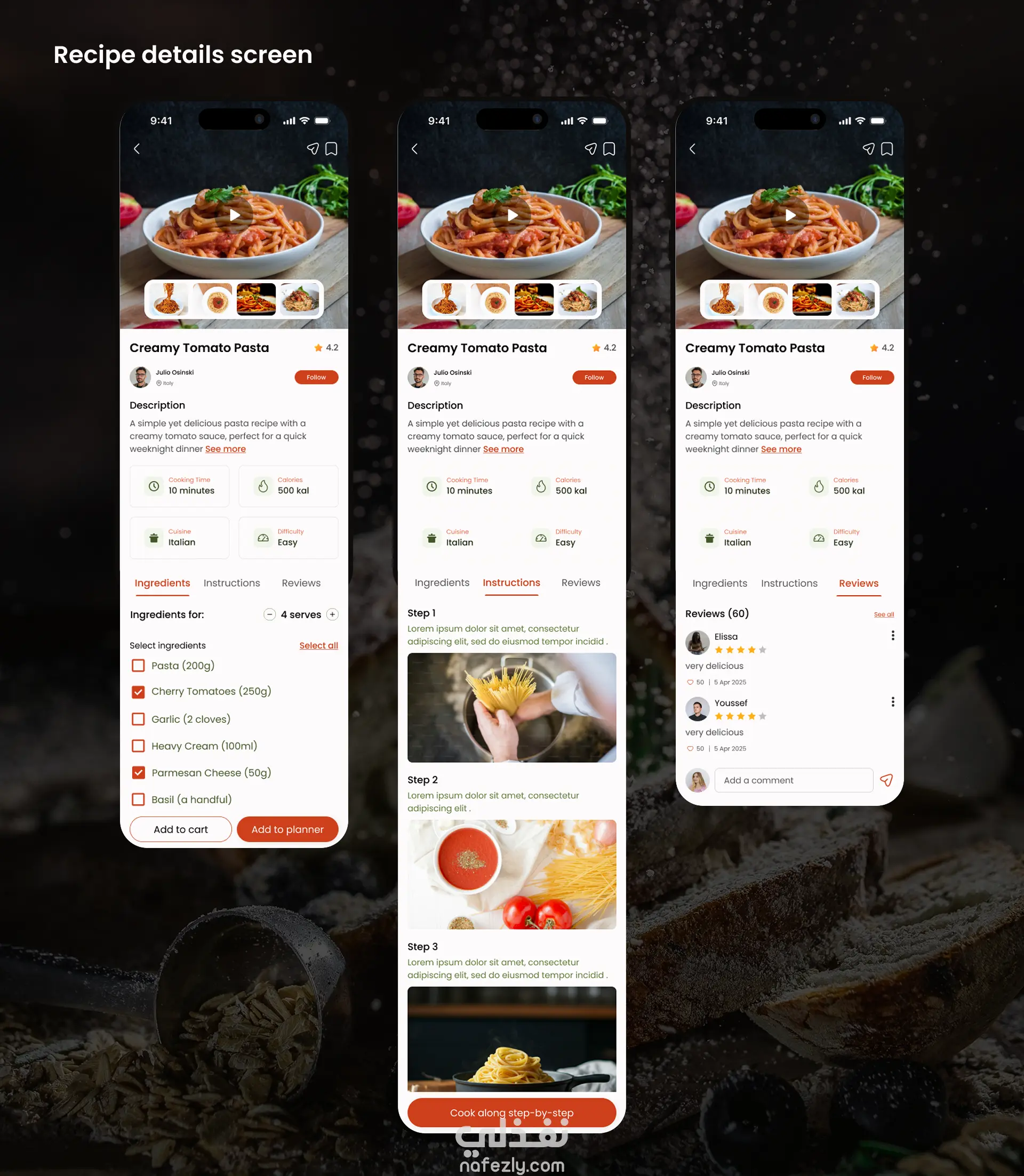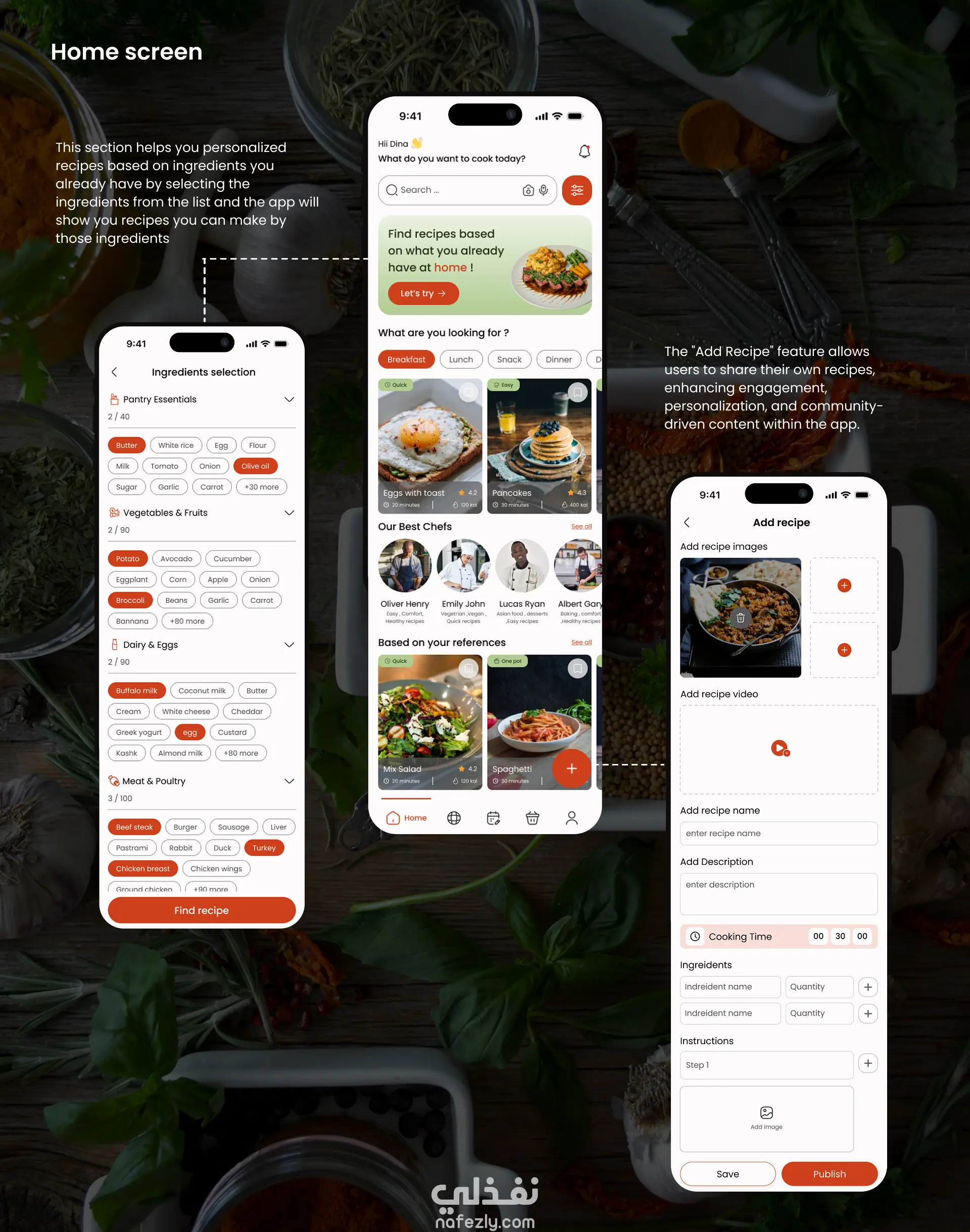 تطبيق وصفات مبتكر يهدف لتسهيل تجربة الطهي اليومية للمستخدمين من جميع المستويات من المبتدئين الي الطهاة المحترفين . يقدم التطبيق واجهه بسيطة وسلسلة مع تجربة مستخدم مركزة علي سهولة البحث , التصفح , التنفيذ خطوة بخطوة .