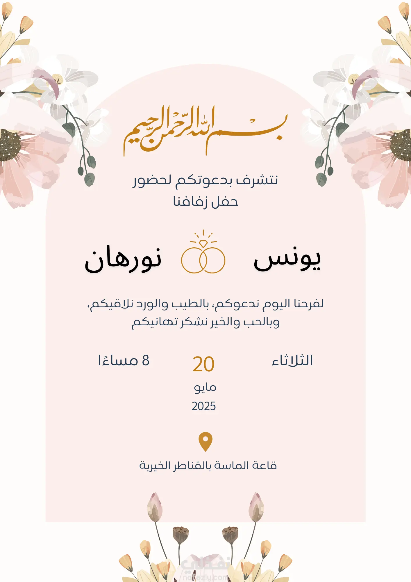 تقديم دعوة زفاف مزخرفة وبسيطة ومريحة للعين