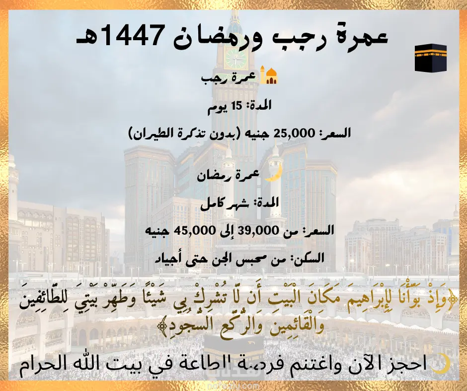 تصميم إعلانى عن حج وعمرة للإقبال على الرحلات بطريقة منظمة وبسيطة