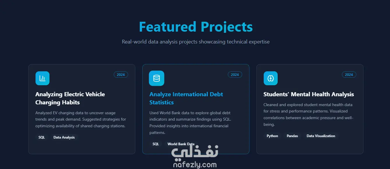هل تحتاج إلى Portfolio احترافي يعكس مهاراتك ويُظهر أعمالك بشكل منظم وجذاب؟ سأقوم بإنشاء Portfolio مخصص لك، يناسب مجالك، ويعكس هويتك الشخصية والاحترافية، ليكون أداة قوية تساعدك في الحصول على عملاء وفرص أفضل.