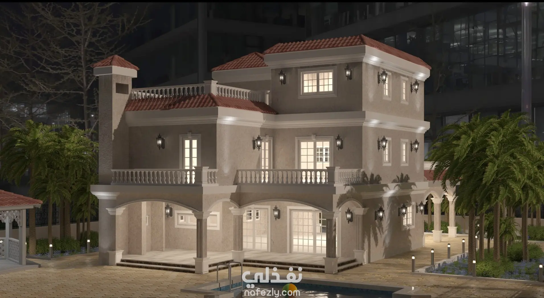 تصميم خارجي معماري لفيلا كلاسيكية — نموذج ثلاثي الأبعاد متكامل تفاصيل العمل - محاكاة لمشروع قائم