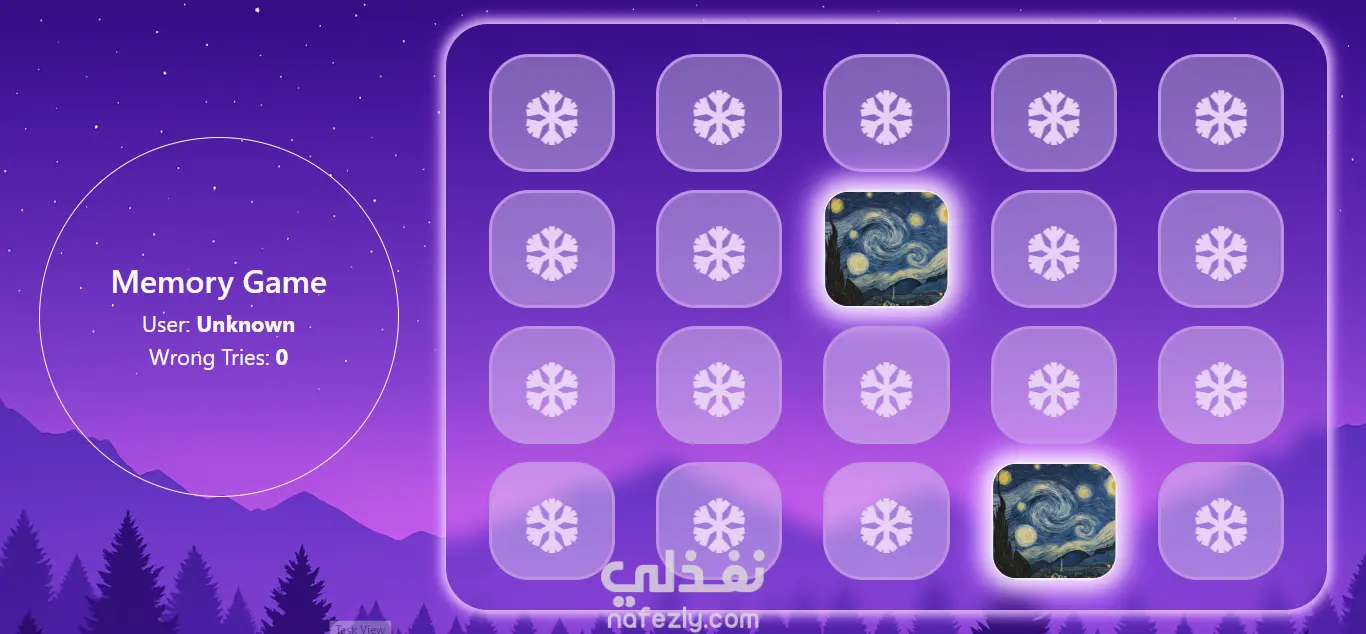An interactive memory card game featuring smooth 3D flip animations, neon-inspired visual effects, and engaging gameplay mechanics. Includes player scoring and multiple difficulty levels.