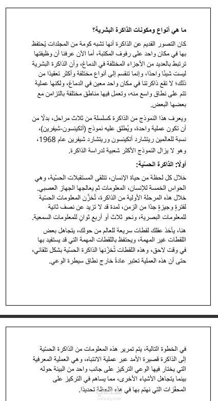 بحث عن الذاكرة (عملياتها ومكوناتها وأنواعها وطرق قياسها)