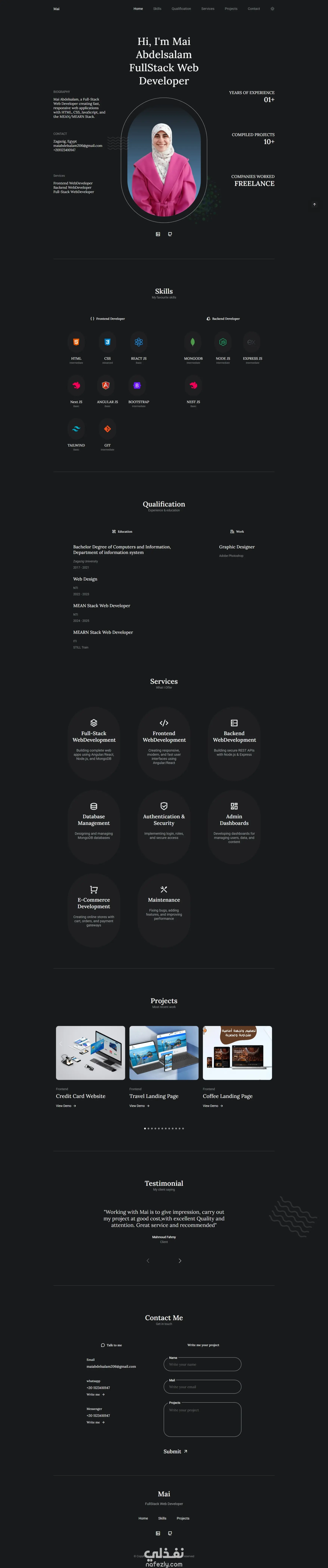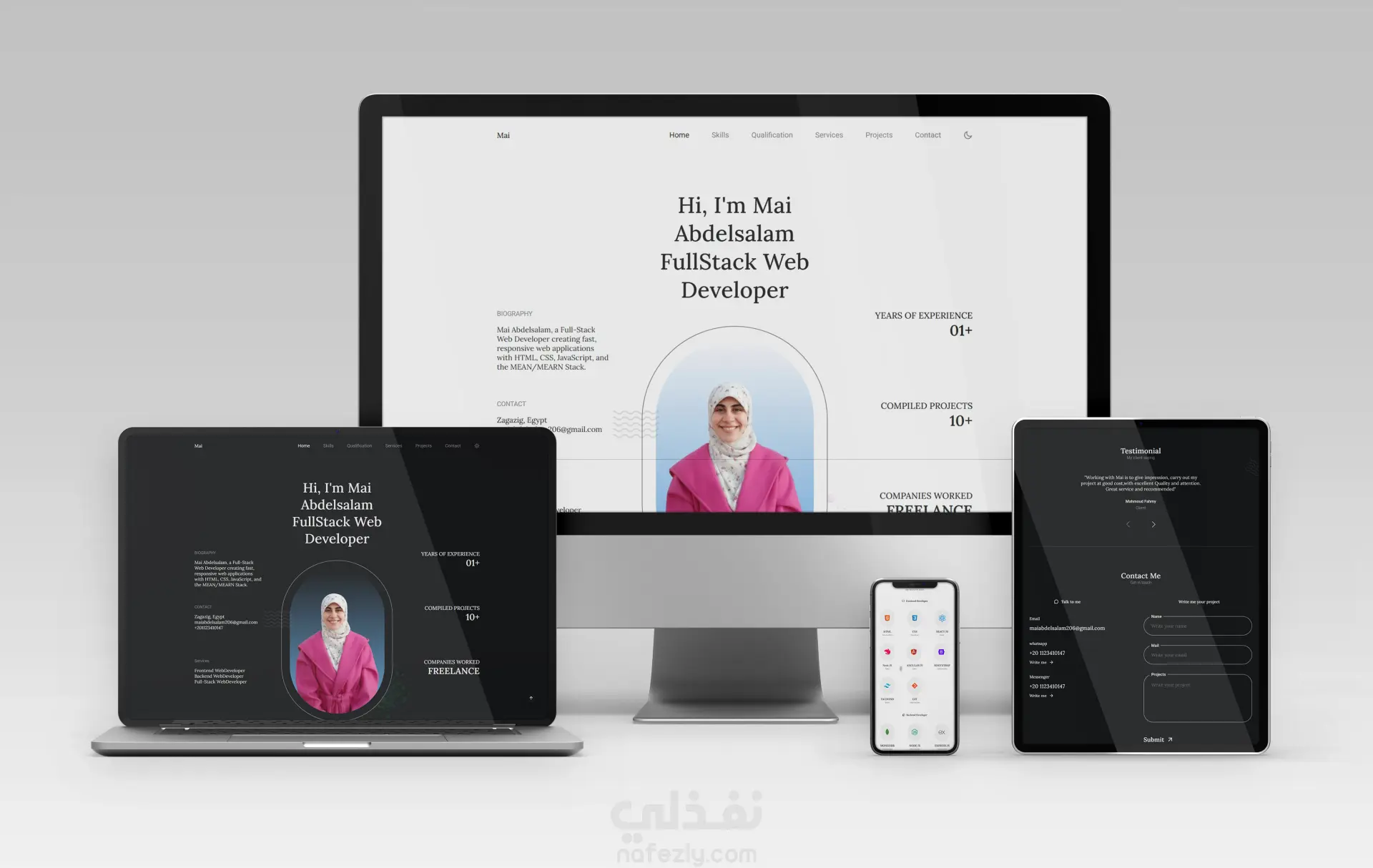 تصميم وتطوير موقع بورتفوليو احترافي متجاوب مع Light/Dark Mode