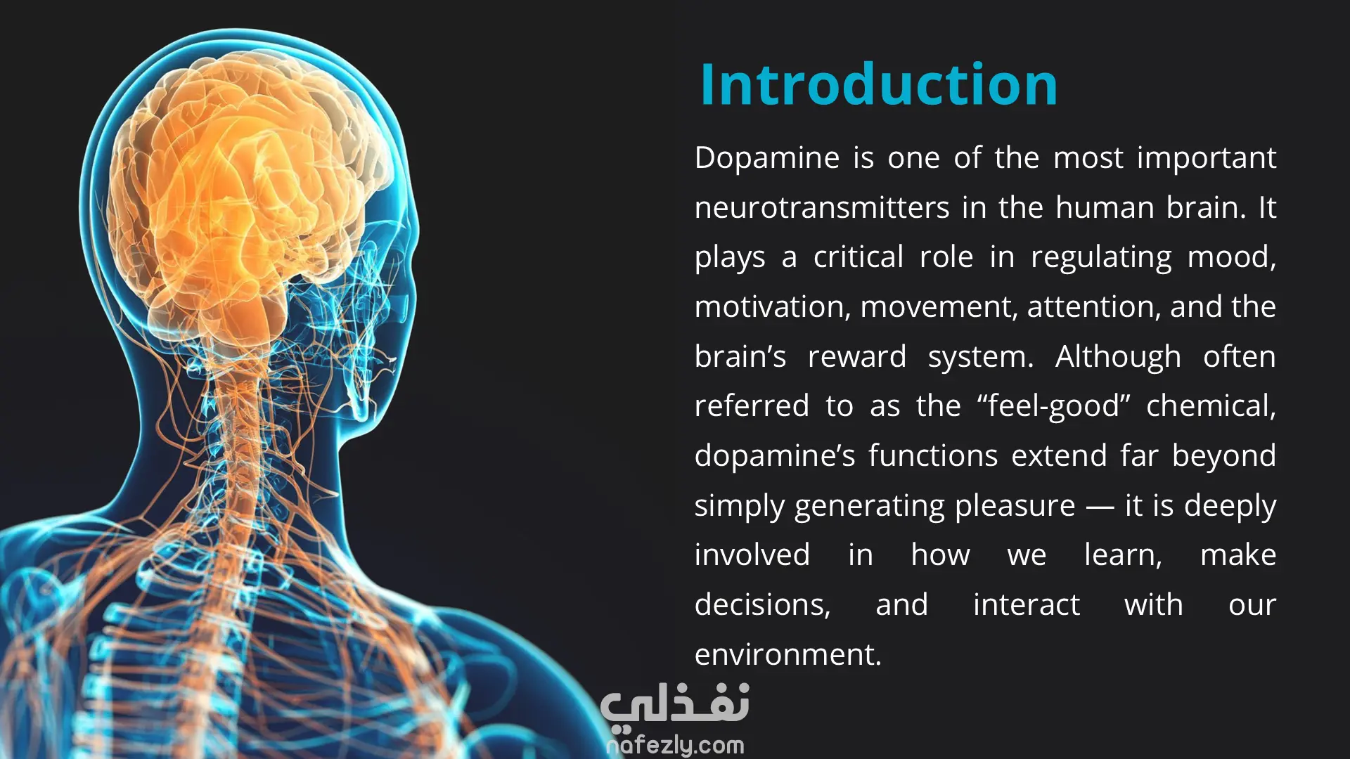 عرض علمي احترافي عن الدوبامين: هرمون السعادة ودوره في الدماغ والسلوك