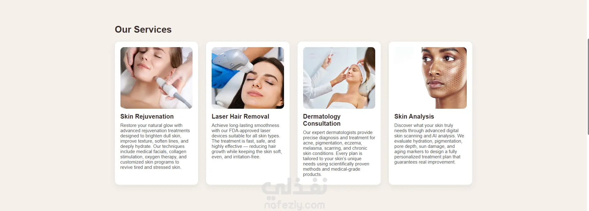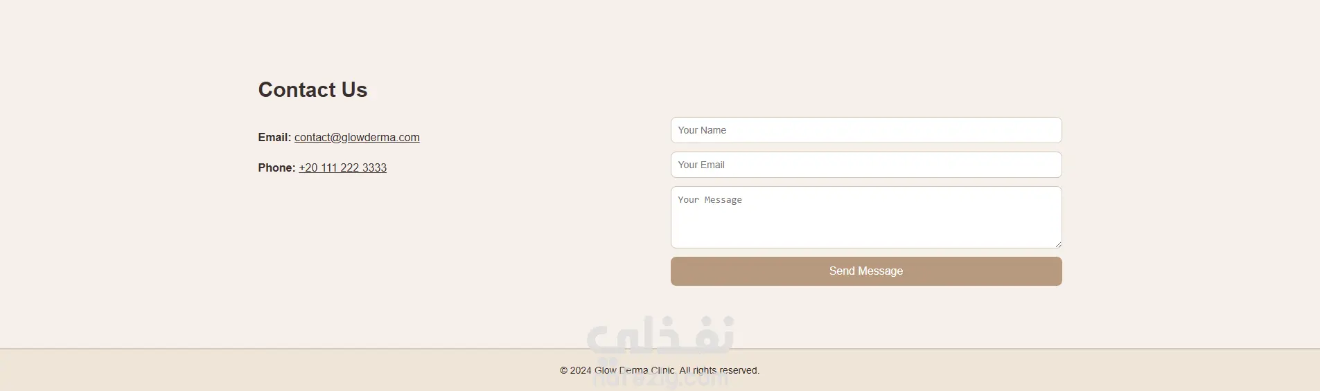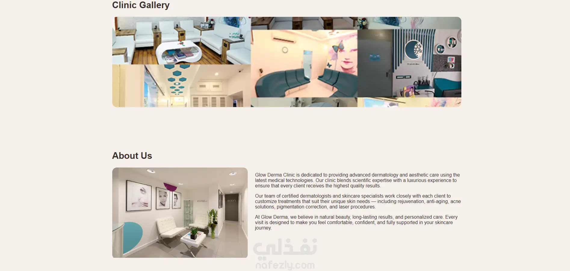 وصف المشروع: تم تصميم موقع إلكتروني احترافي لعيادة Glow Derma Clinic، يهدف إلى تقديم تجربة مستخدم مريحة وجذابة لزوار الموقع. الموقع يعرض الخدمات الطبية للعيادة بطريقة منظمة الأدوات والتقنيات المستخدمة: HTML5 & CSS3 تصميم متجاوب (Responsive Design) CSS Grid و Flexbox لترتيب المحتوى معالجة صور احترافية باستخدام object-fit وborder-radius تصميم واجهة مستخدم Clean & Professional مميزات المشروع: تصميم متجاوب يناسب جميع الأجهزة (ديسكتوب، تابلت، موبايل). ألوان هادئة واحترافية تعكس هوية العيادة. واجهة مستخدم سهلة ومرنة تجعل الزائر يجد كل المعلومات بسرعة. التركيز على تجربة المستخدم وسهولة التصفح. قابل للتطوير لإضافة خدمات إضافية أو أقسام جديدة مستقبلاً.