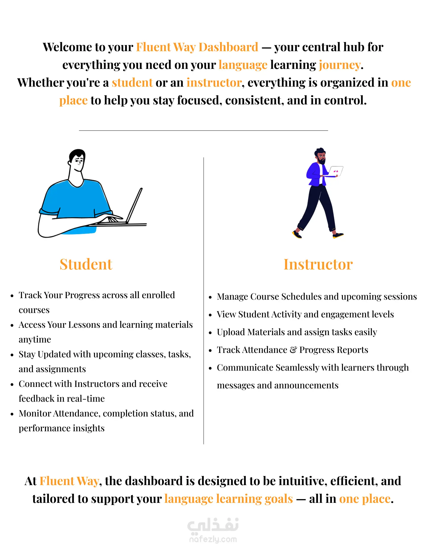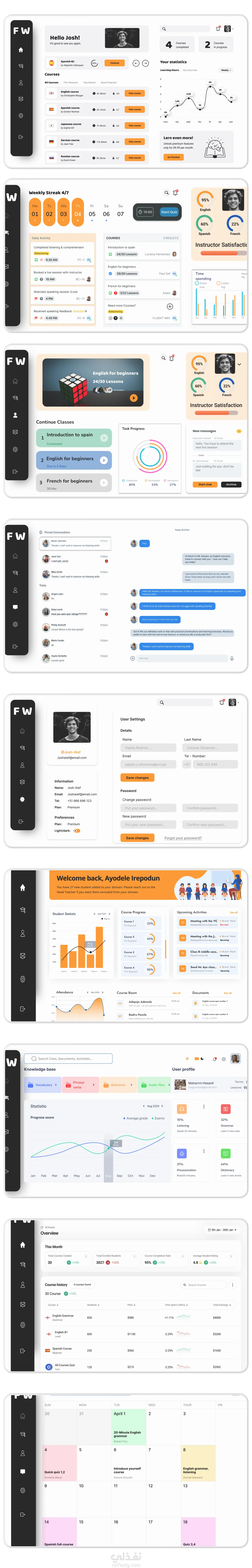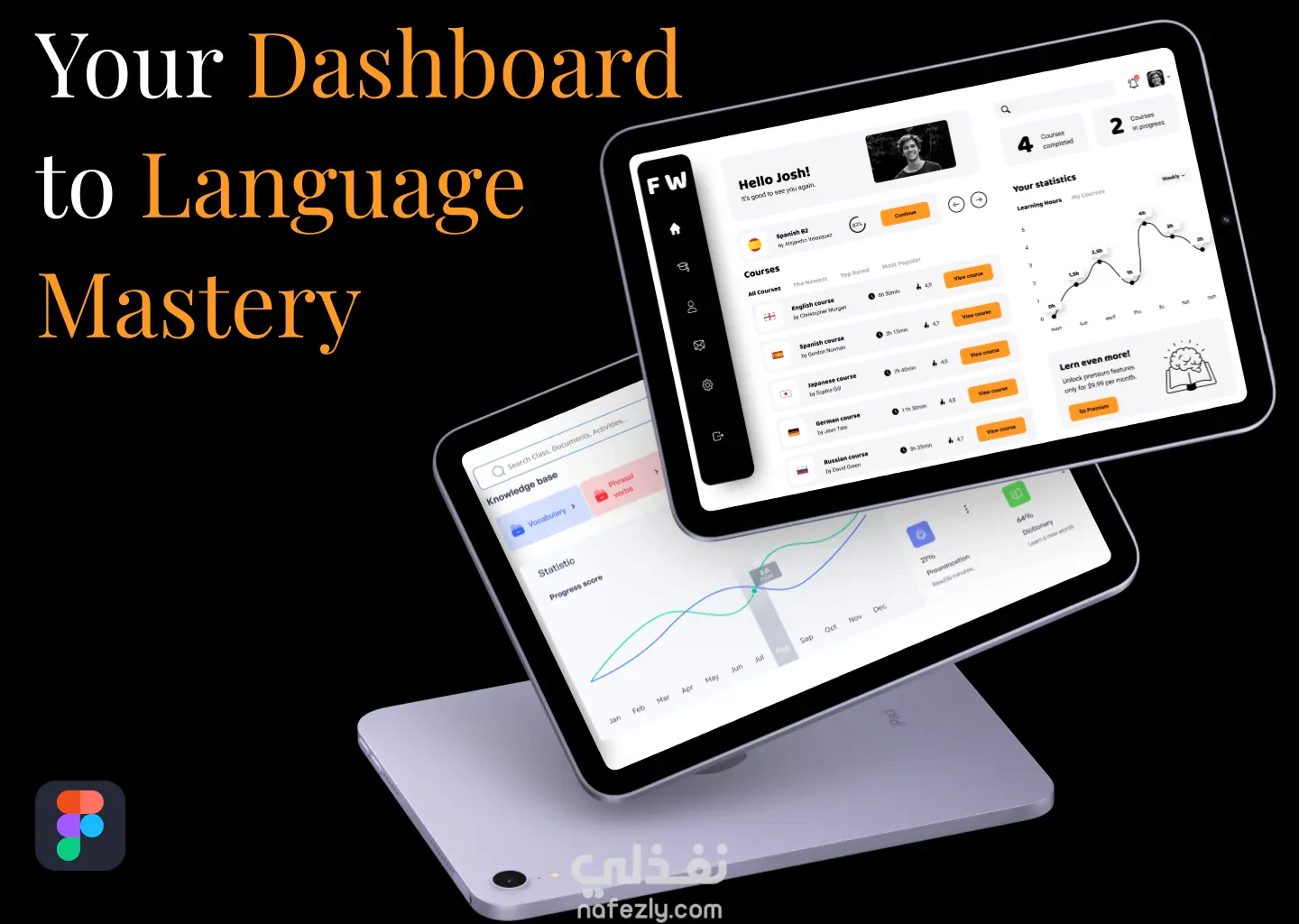 تصميم لوحة تحكم احترافية UI/UX لموقع Fluent Way لتعليم كورسات اللغات أونلاين