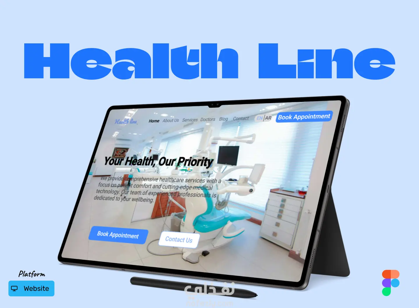 تصميم موقع شامل لحجز المواعيد وإدارة ملفات المرضى.