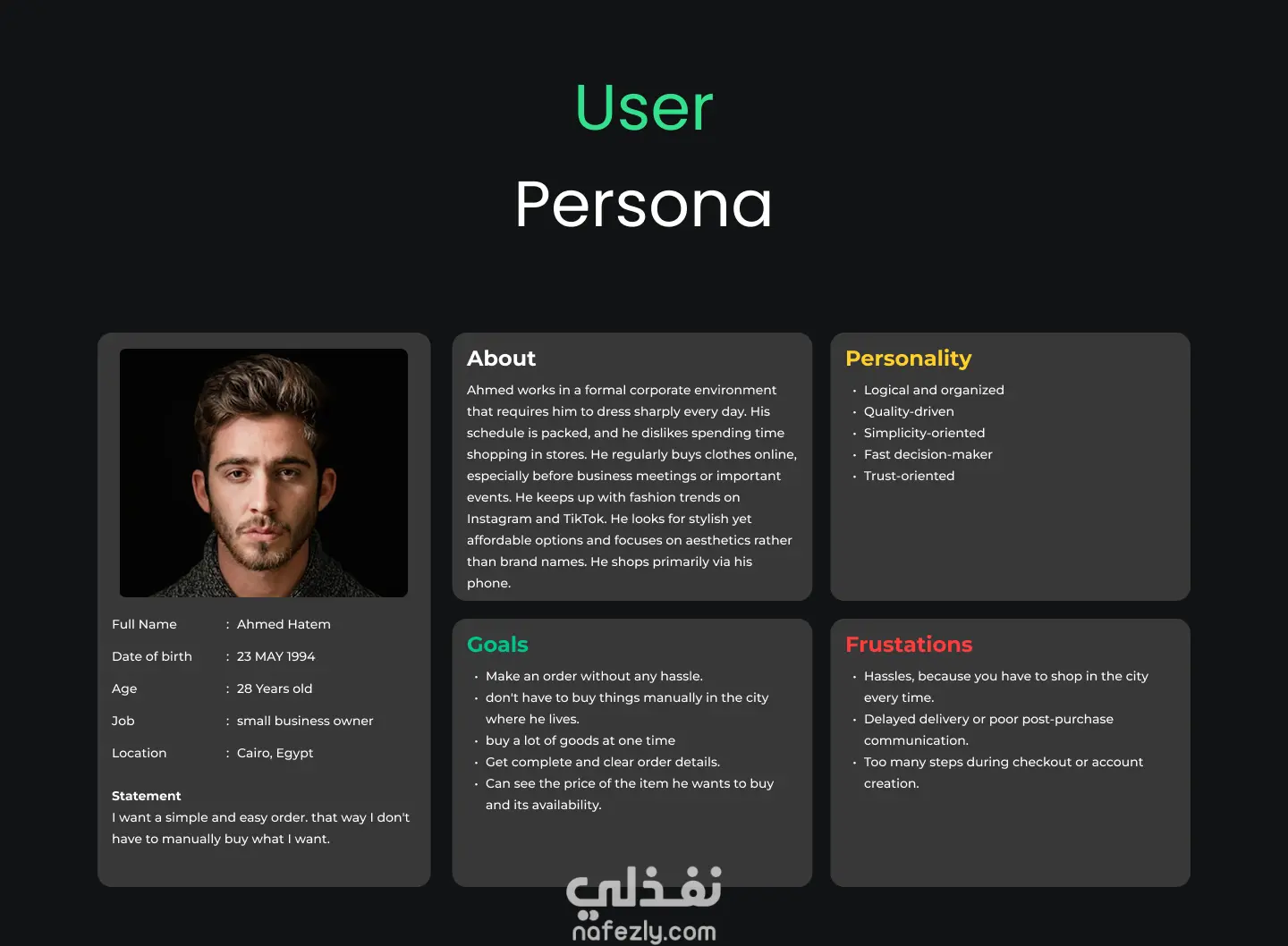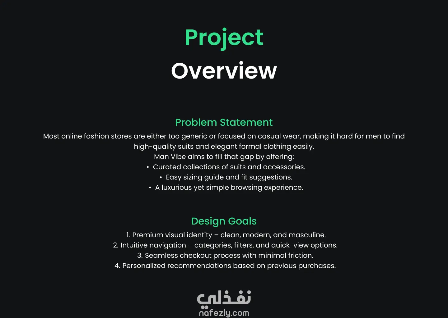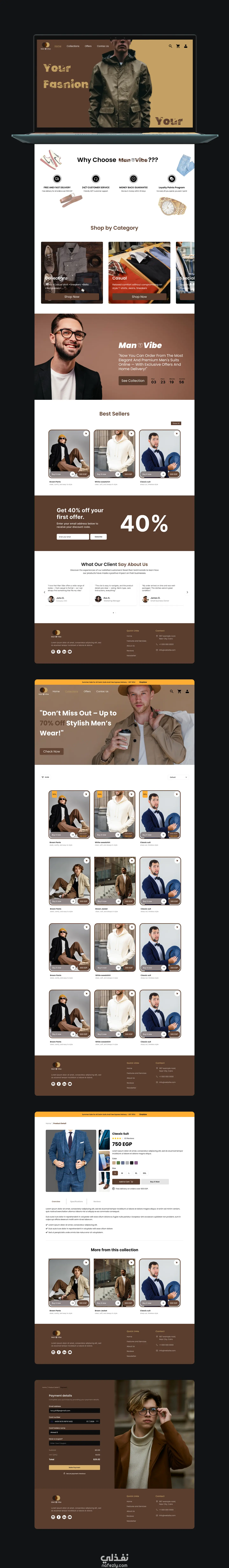 مشروع Man Vibe هو صفحة هبوط (Landing Page) عصرية ومبتكرة تهدف إلى عرض وبيع الملابس الرجالية وبدلات الأفراح بشكل أنيق واحترافي اونلاين دون الحاجة الي التسوق، مع تجربة مستخدم بسيطة وسلسة تعكس هوية العلامة وأسلوبها العصري.