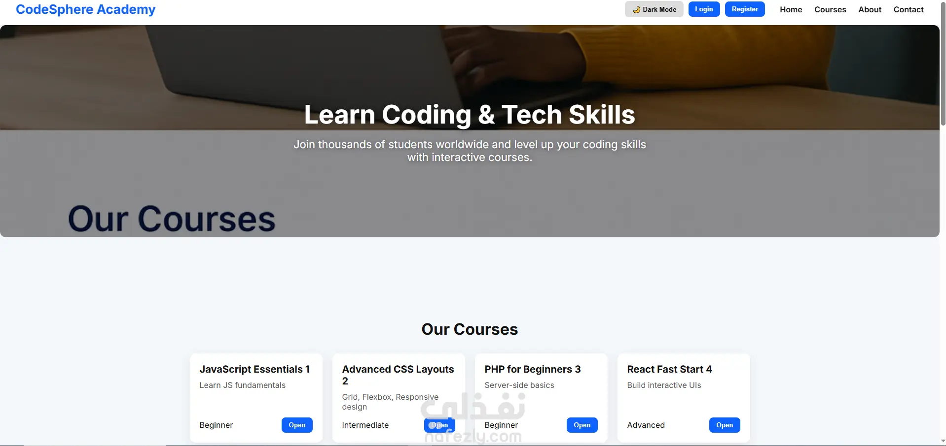 واجهة مستخدم جذابة: بطاقات دورات ديناميكية مع تأثير Hover جذاب.